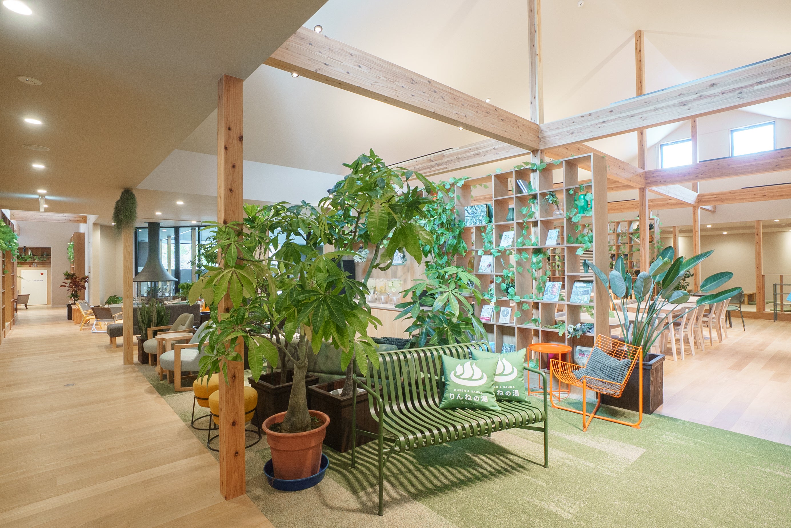 りんねの湯は、2025年11月29日(土)にオープンした、THE BOTANICAL RESORT 林音(ザ ボタニカルリゾート リンネ)内の温浴施設です。男女別の大浴場や、ファミリーやカップルで楽しめるサウナガーデン、ブックラウンジやリラックススペース、県産食材を活かしたお食事やスイーツを楽しめるカフェ、キッズルームなどがあります。植物園で育てられた熱帯植物をはじめ、緑が多くあしらわれた癒しの空間で、一日ゆったりとお寛ぎいただけます。日帰りのご利用はもちろん、ご宿泊のお客様はチェックイン〜チェックアウトまで無料でご利用いただけます。宿泊予約はWEBサイトから承っております。
