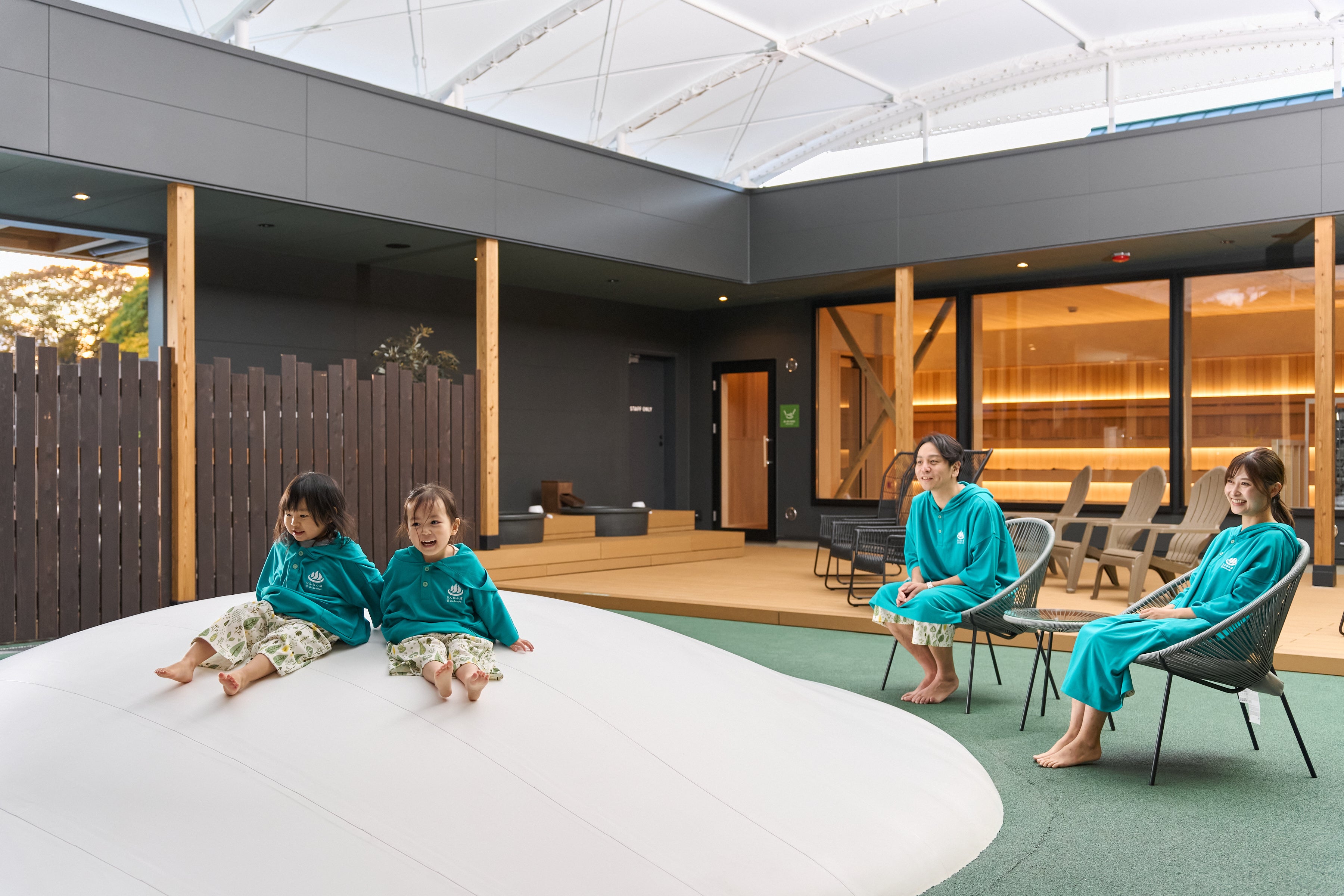 男女別の大浴場に加え、男女共用で利用できるガーデンサウナをご用意しています。サウナの目の前にはお子様が遊ぶことができるふわふわドームやキッズルームが併設されており、ご家族が一緒に過ごすこともできます。県産食材を取り入れた食堂や6,000冊を超える漫画と書籍を揃えるブックラウンジ、マッサージチェアを備えたリラックススペースもあり、幅広い世代が、それぞれのスタイルで滞在を楽しめる環境を整えています。