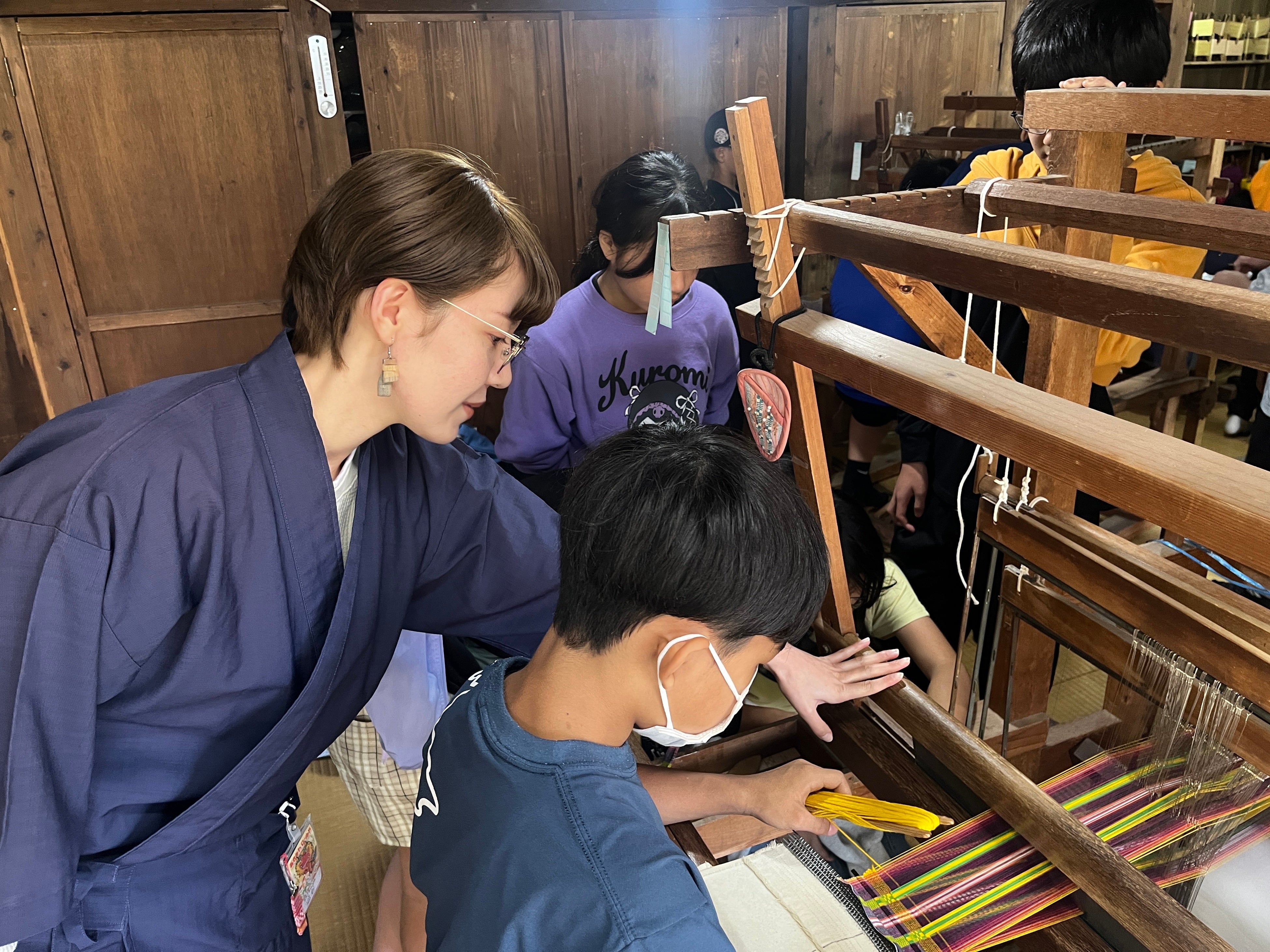 また、目の前で職人が仕上げを行うと、「早い!」「おお〜」と、技の確かさに驚きの声があがりました。体験を終えた児童からは「また来たいです」という声も聞かれ、ものづくりの楽しさを通して、織物文化への興味が芽生えた様子がうかがえました。