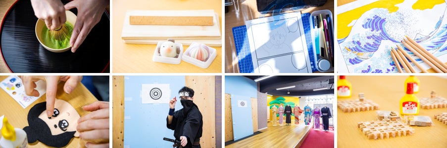 茶道体験、和菓子作り体験、漫画体験、浮世絵塗り絵体験、組木コースター体験、推しぬい体験、忍者体験、浴衣着付体験など、日本の伝統文化からポップカルチャーまで幅広いプログラムを展開します。各プログラムはインストラクターが丁寧にサポートし、初心者や訪日外国人の方でも安心して参加できる内容となっています。