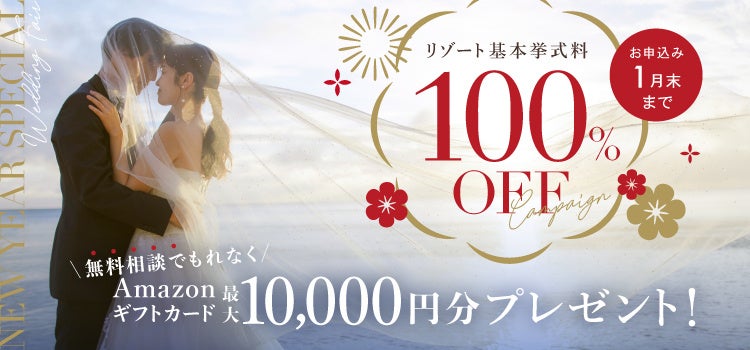 これらを記念し、 2026年1月31日(土)までにお申し込みいただいた方限定で、基本挙式料が100%割引になるキャンペーンを開催いたします。