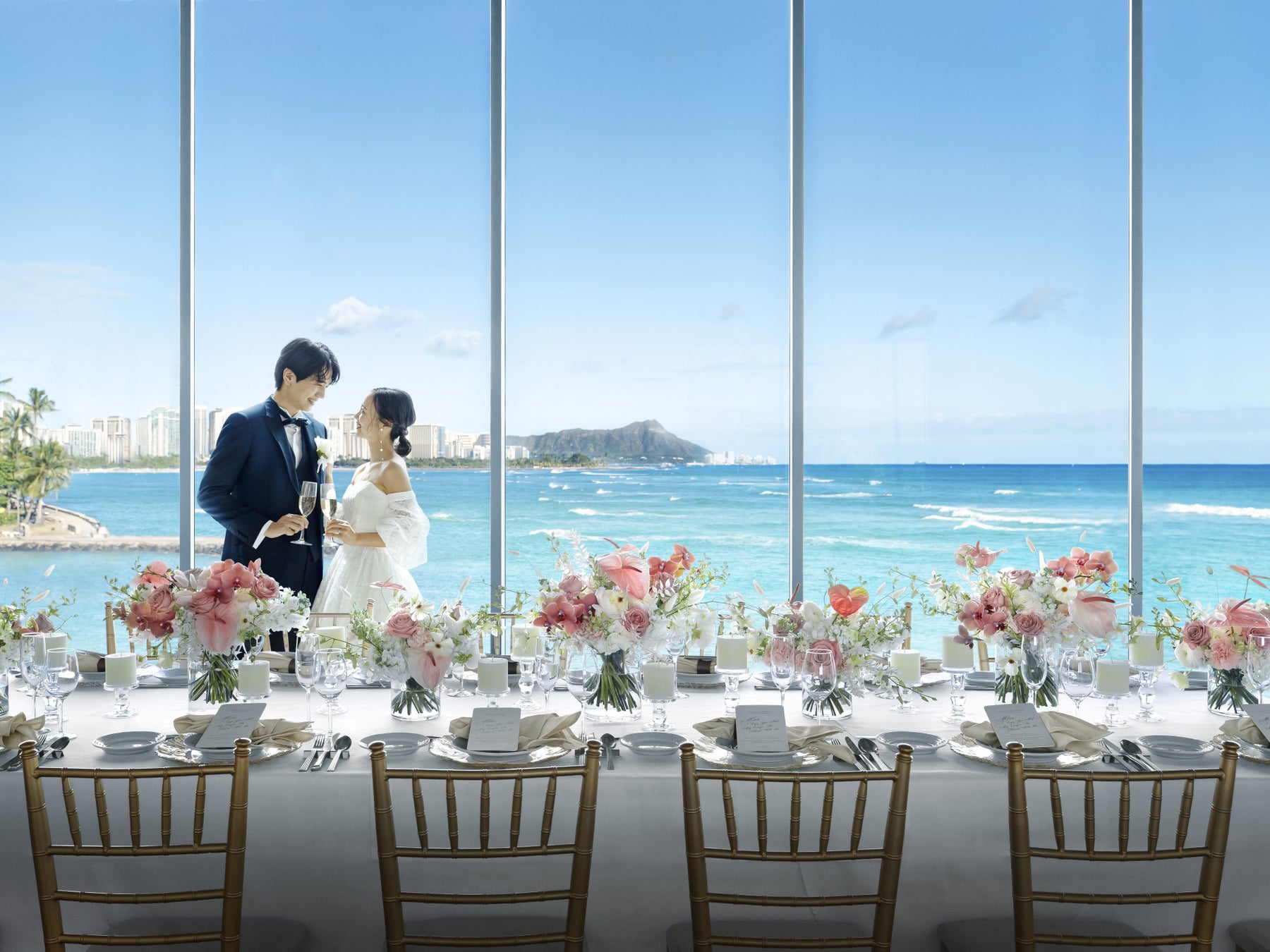 また、同施設内にはハワイで数々の受賞歴を持つレストラン「53 BY THE SEA」を併設し、パーティでは世界の美食家たちを虜にしてきたマスターシェフ、河合 隆良(かわい たかよし)が手掛けるウエディングメニューをご提供いたします。