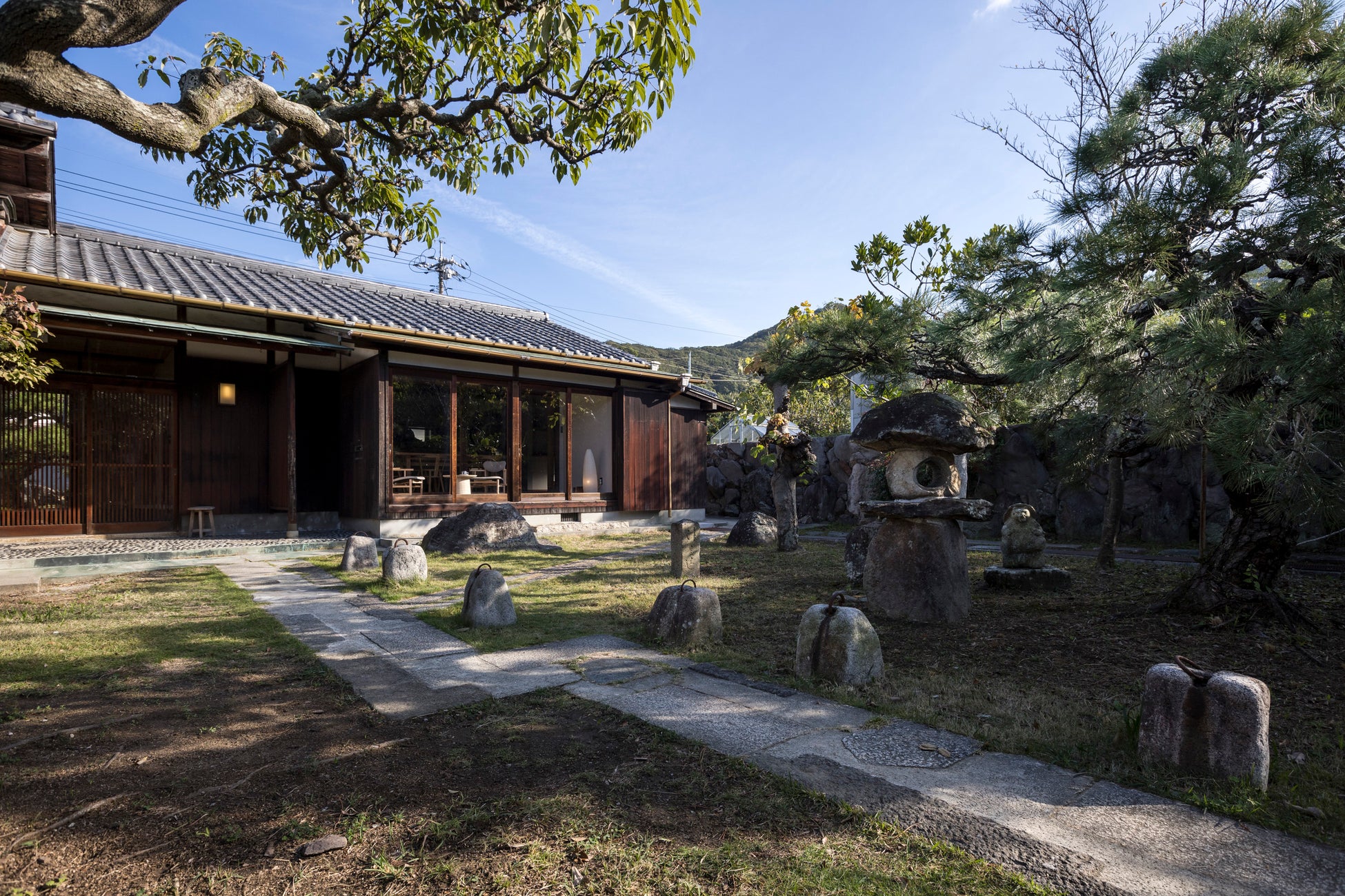 小豆島リトリーツ株式会社(香川県小豆郡小豆島町、代表取締役:加藤直樹)が運営する一棟貸し宿「お屋敷ステイ 幸(こう)」の象徴は、玄関まで続くアプローチに静かに並ぶ、いくつもの大きな石です。 それは単なる庭石ではなく、かつて醤油を搾る際に使われていた重石であり、この家が「醤油の名家」の邸宅であったことを物語る風景そのものです。