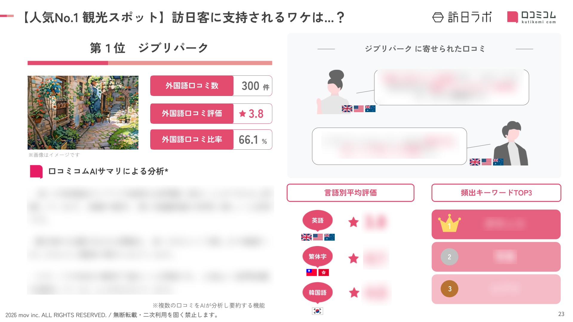 そのほか、言語別ランキングや口コミ分析の詳細は、調査資料をご覧ください。