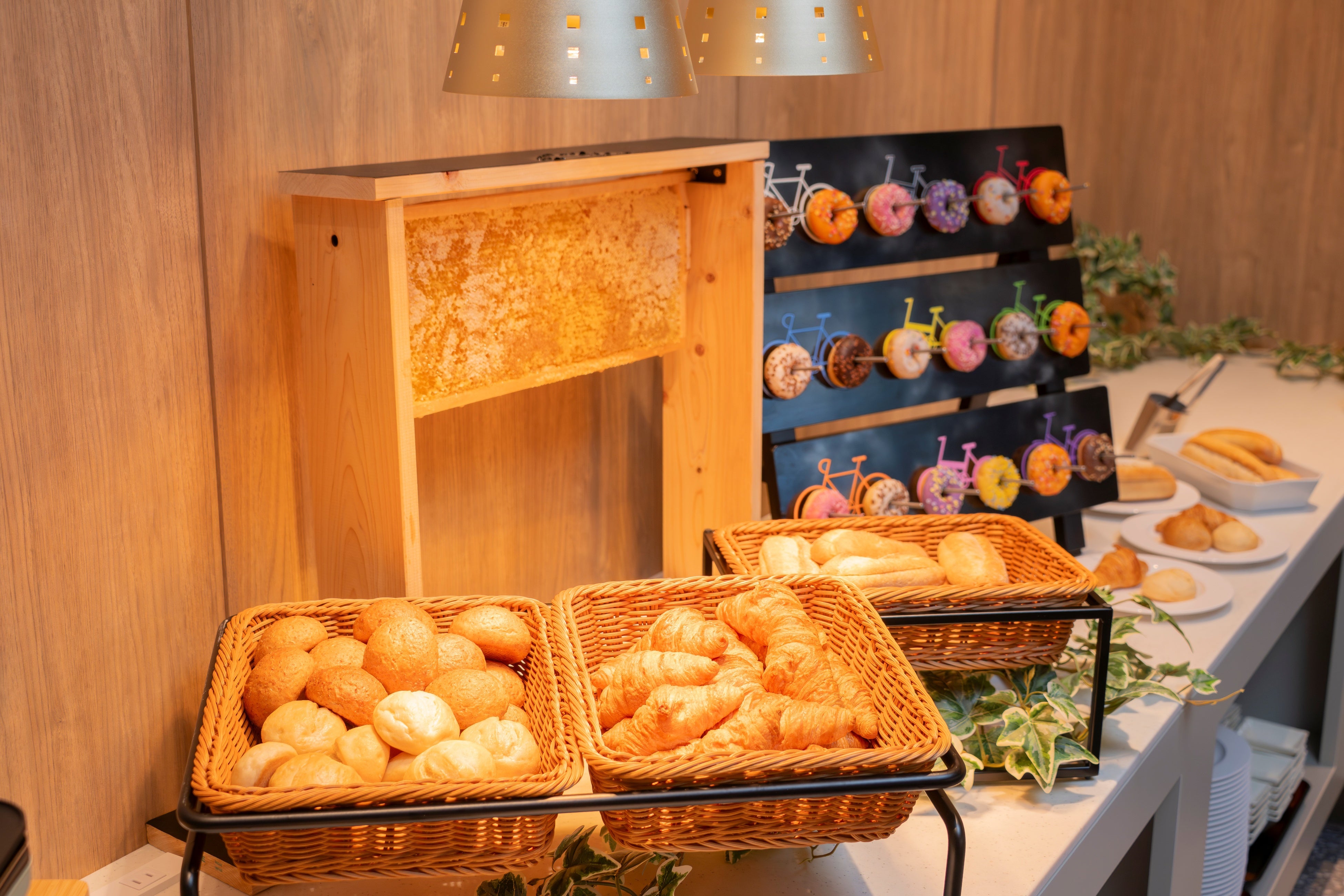特に力を入れているのが、サイクリストや健康を気遣うトラベラーへのサポート。黒毛和牛のローストビーフ、自家製の豆腐には、広島の川中醤油特製醤油と瀬戸内の花塩・オリーブ油を添え、シンプルながら質の高い「本物の味」を提供。ヨーグルトコーナーには、プロアスリートも愛用する特別なグラノーラ、旬の生フルーツやコンポートをご用意し「腸活と活力補給の両立」をサポート。