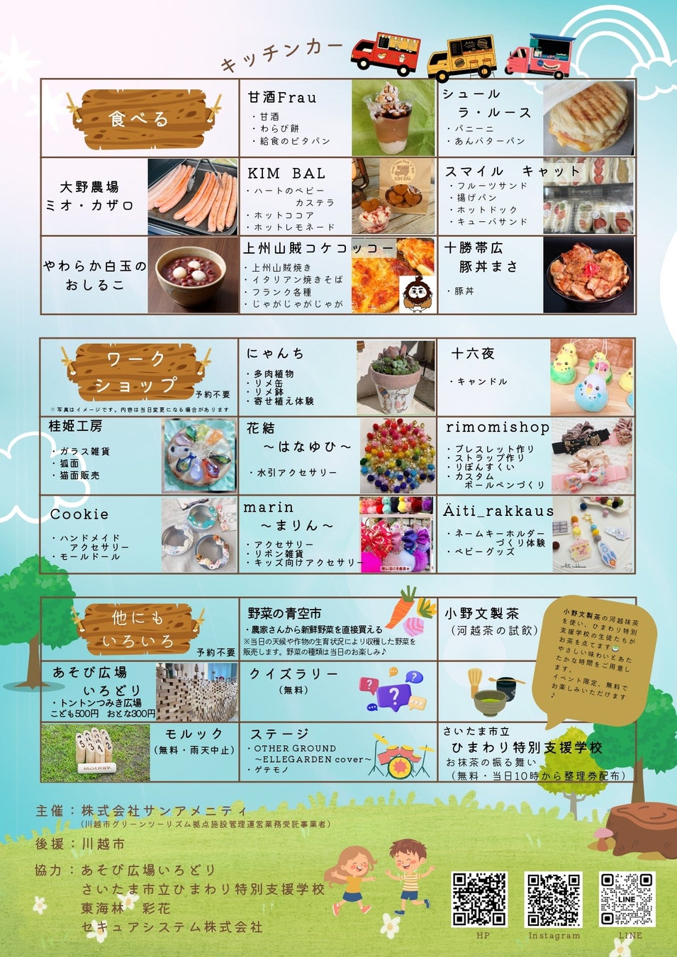食欲を満たすキッチンカーや、川越産野菜を農家さんとお話ししながら買える、野菜の青空市。