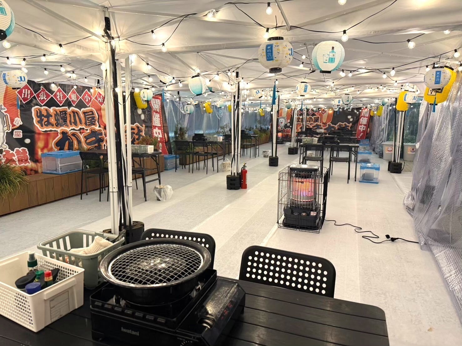 店内は全席テントと横幕でしっかりと覆い、ストーブも完備。