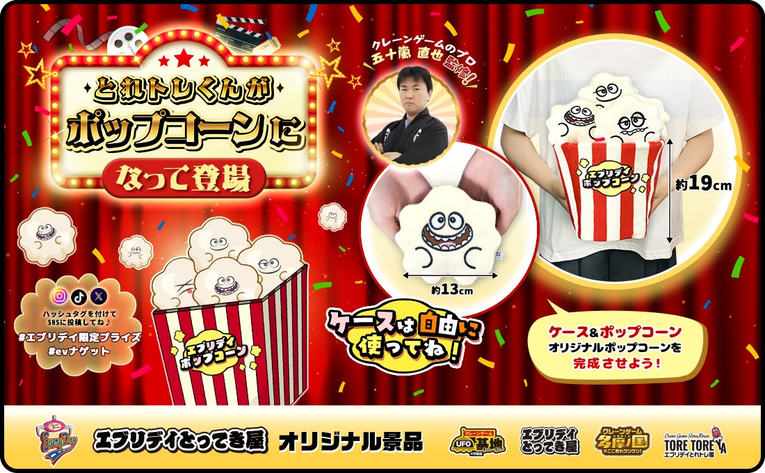 「笑顔創造」が企業理念の株式会社東洋(代表取締役:中村秀夫/本社:埼玉県桶川市以下、当社)は、当社が展開するクレーンゲーム景品シリーズ「エブリデイ オリジナル景品」として、新たにクレーンゲームのプロ監修の「ポップコーンぬいぐるみ」が登場します。
