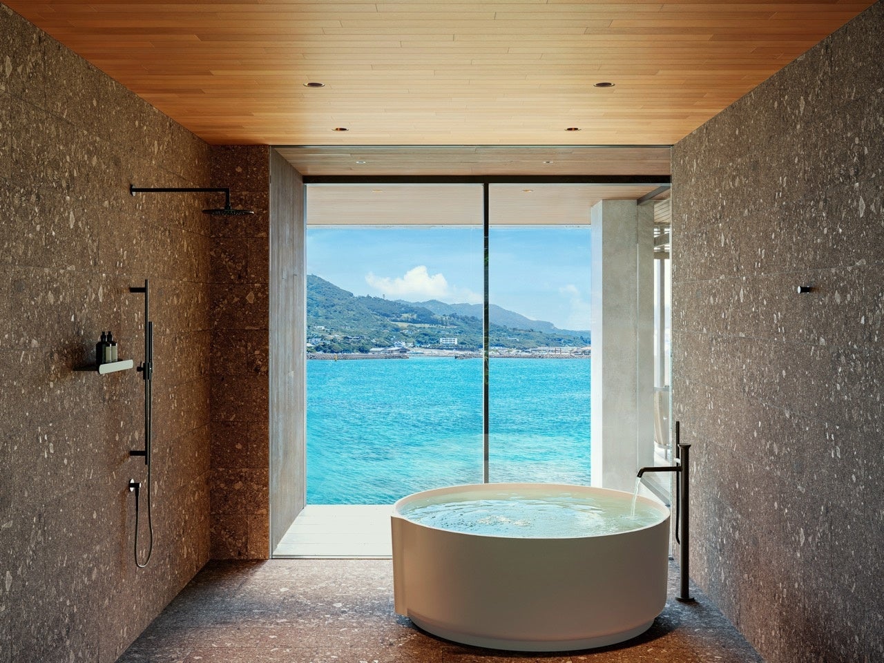 湯に身を委ねることで、建築と自然が溶け合う瞬間を体感できます。