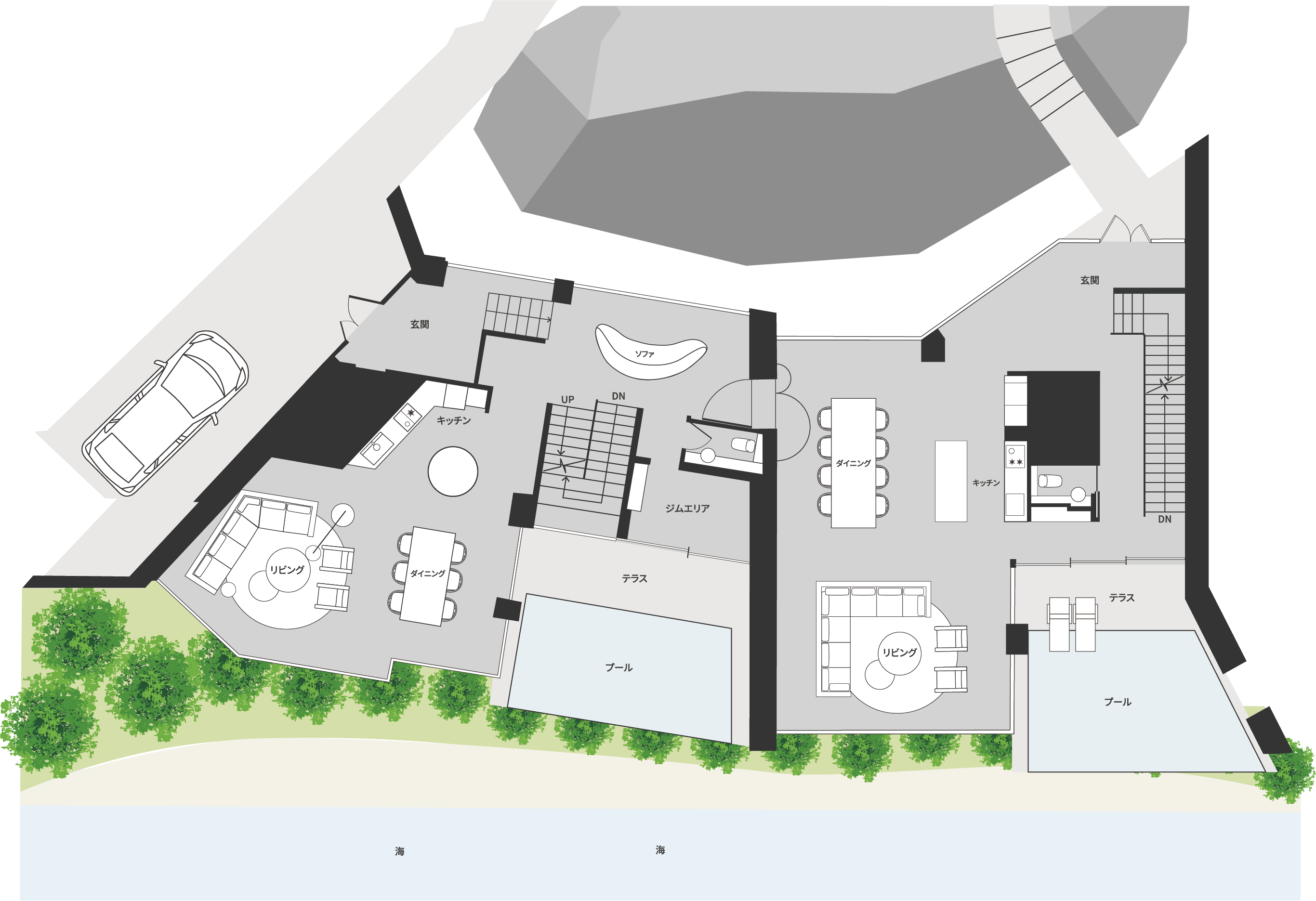 この二つの自然を同時に取り込むことが、本建築のコンセプトです。