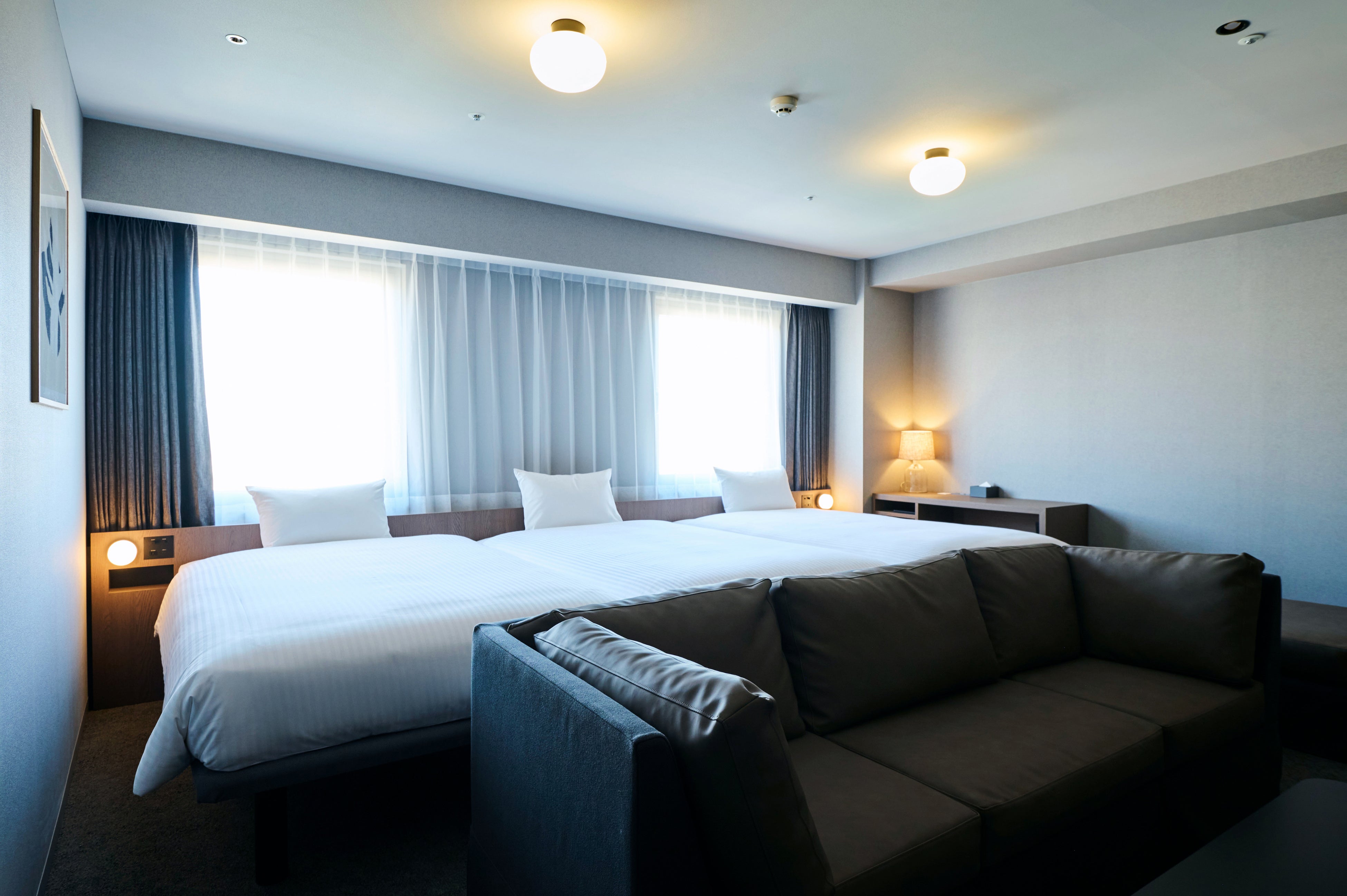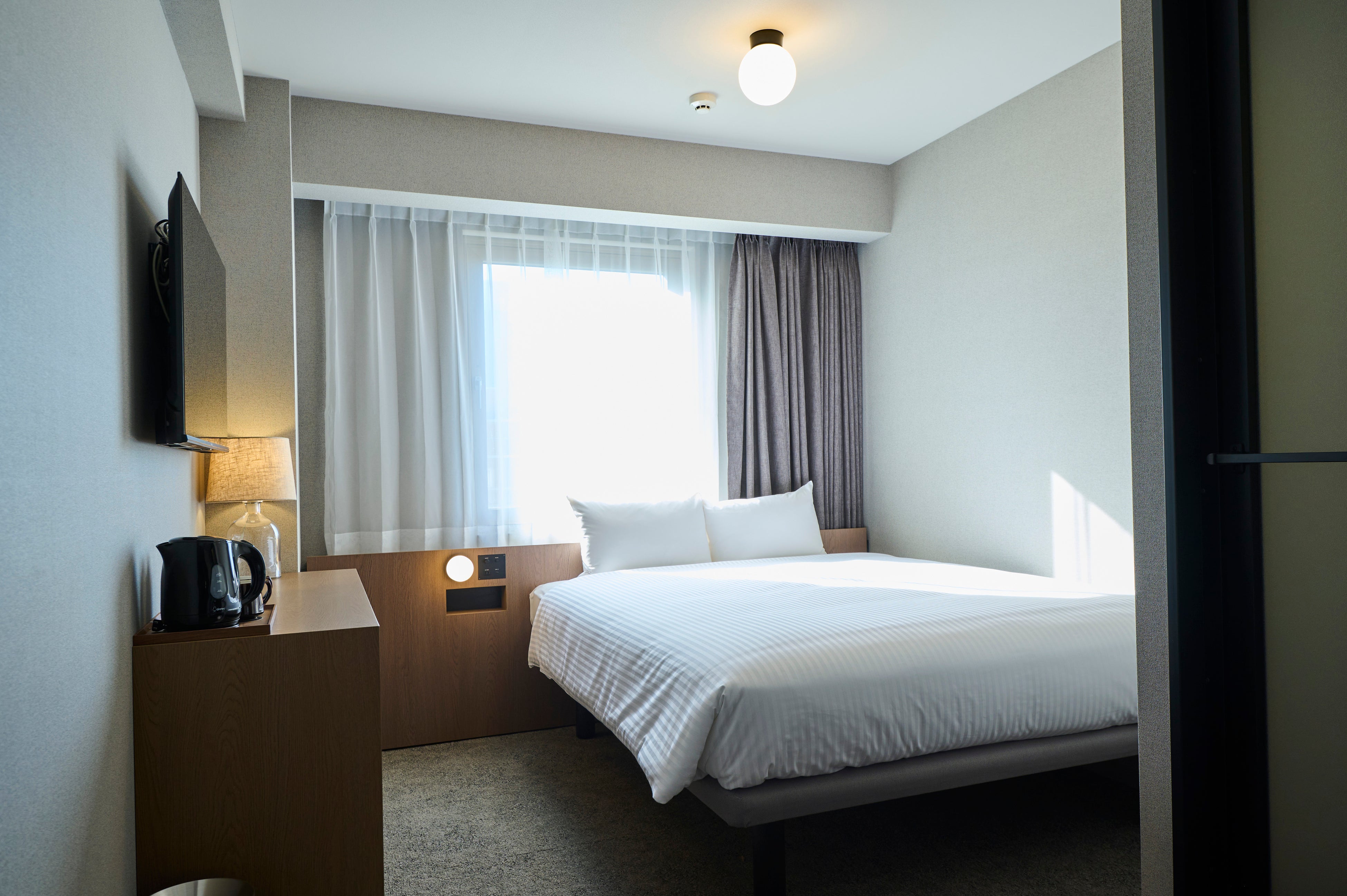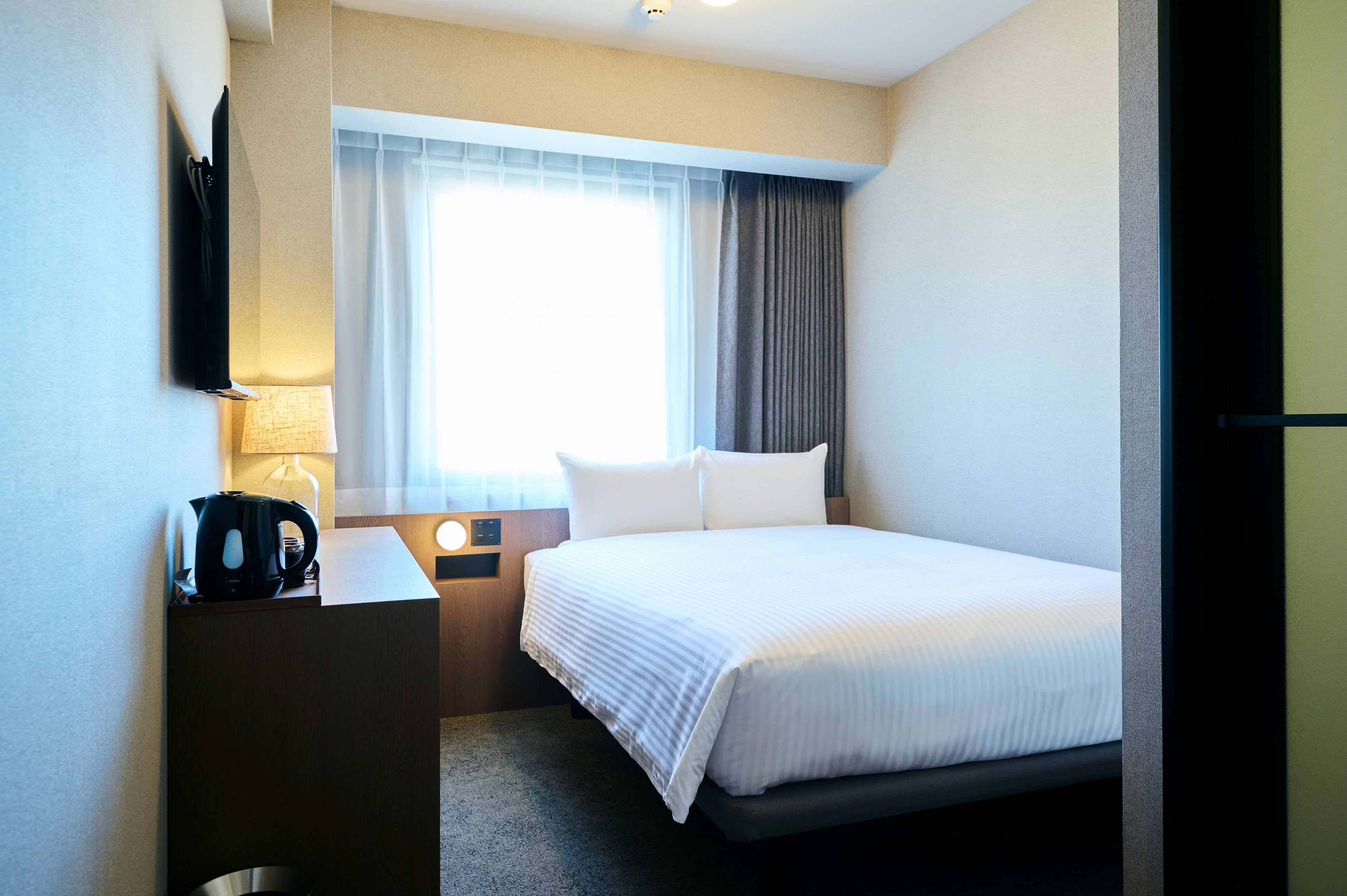 クイーンサイズベッドで睡眠のゆとりを確保。カップルや女性同士の旅行、快適さを求める出張にも適した客室です。