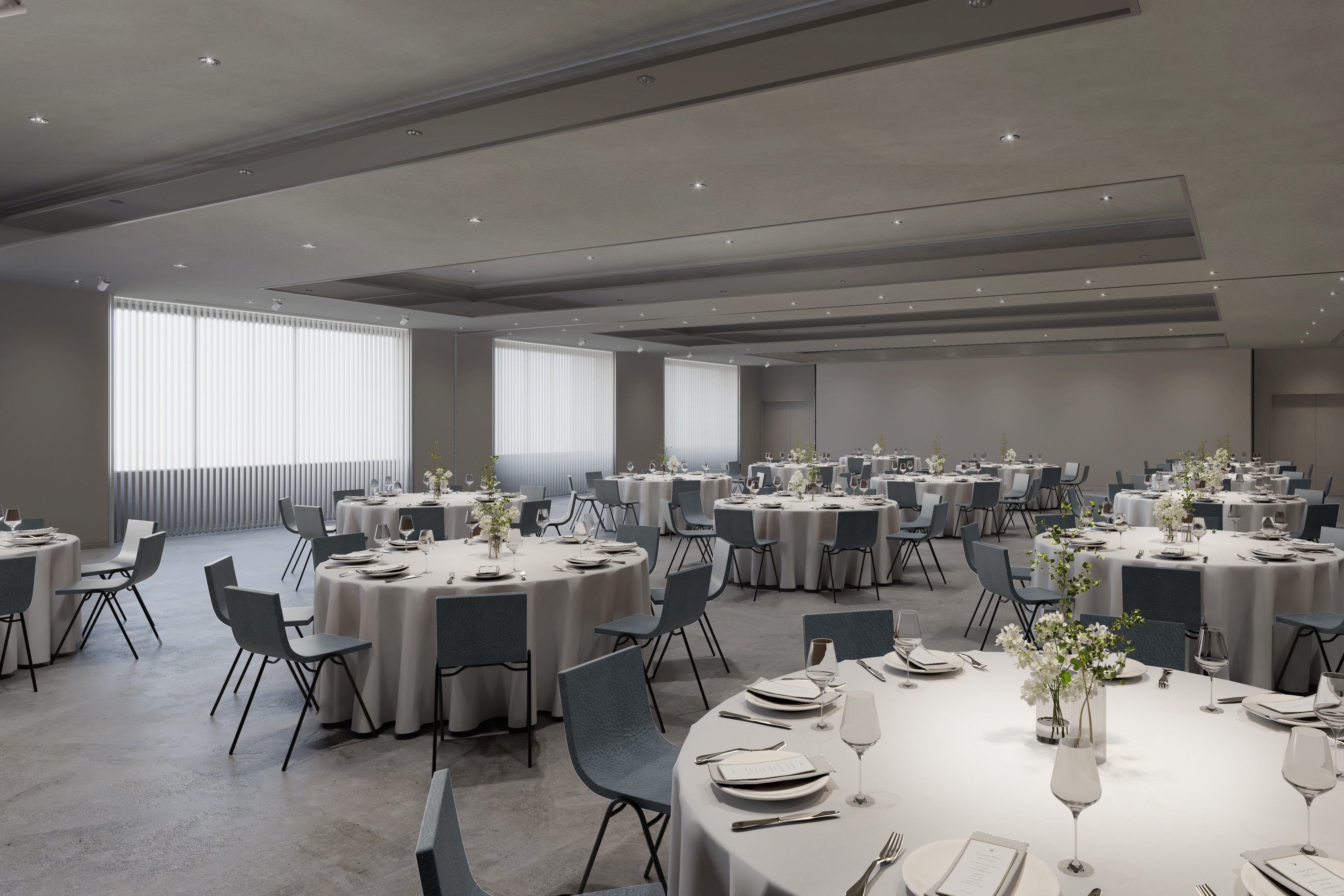 会議やセミナーはもちろん、プロジェクトのキックオフや懇親会、展示会、プレスイベント、ウエディングの二次会まで幅広く対応するバンケットフロア。3つの会場は用途に応じて使い分けが可能で、バンケット1・2は連結利用にも対応します。全会場に100インチフルHDプロジェクターを備え、飲食を伴う催しにも柔軟に対応。