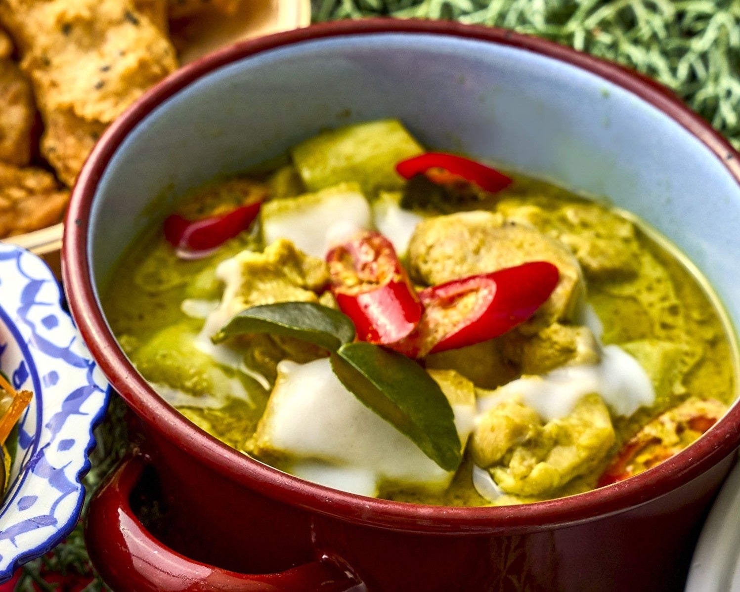 だし巻きロールサンドイッチ、BBQフライドチキン、パテドカンパーニュ タスマニアンマスタード、スイートチリフライドポテト、チキングリーンカレー、ジャスミンライス、チキンスキューアーズ、ポークガパオ