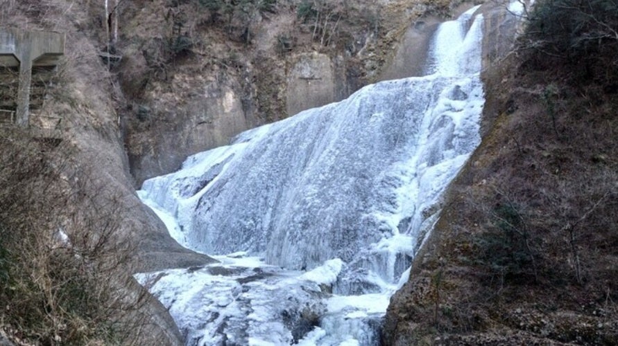 袋田の滝は高さ120m、幅73mと大迫力で日本三名瀑のひとつに数えられています。真冬には滝全体が凍りつき、氷のカーテンのような“氷瀑”が現れ、自然が造る巨大な氷の彫刻は見ほれるほどの美しさ。見頃は例年12月下旬~2月中旬で、観瀑台から間近に望む荘厳な氷瀑は、冬ならではの芸術作品のようです。
