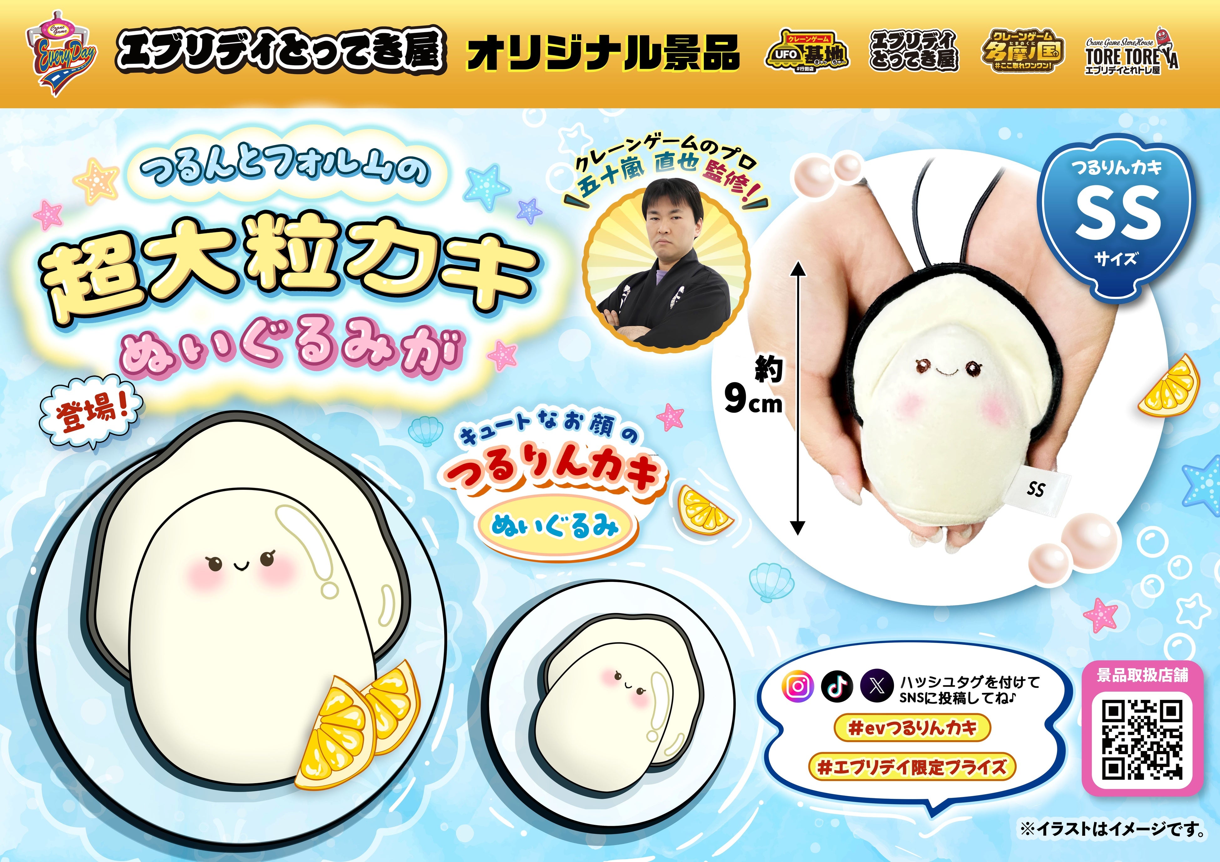 「笑顔創造」が企業理念の株式会社東洋(代表取締役:中村秀夫/本社:埼玉県桶川市以下、当社)は、当社が展開するクレーンゲーム景品シリーズ「エブリデイ オリジナル景品」として、新たにクレーンゲームのプロ監修の「つるりんカキぬいぐるみ」が登場します。