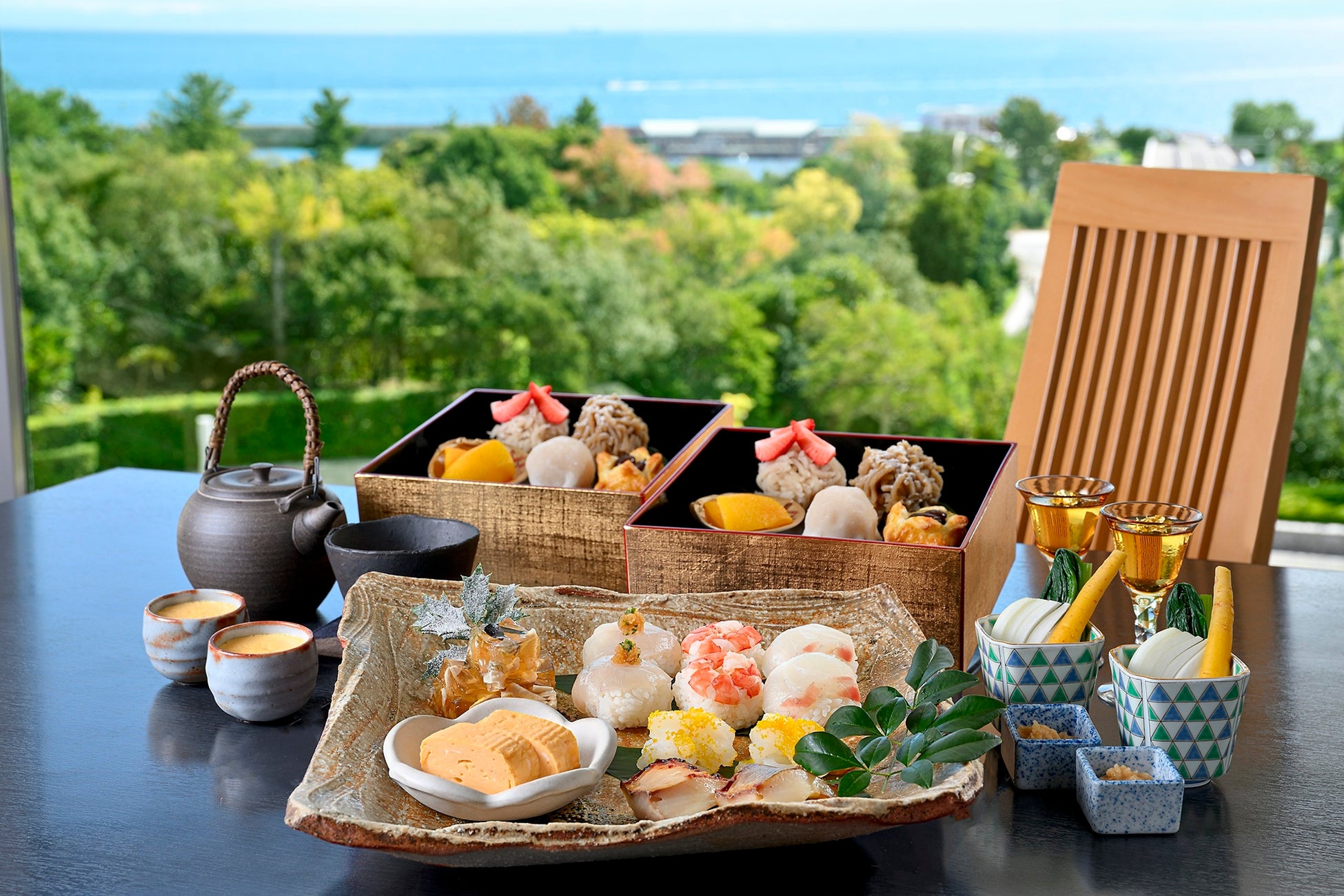一面ガラス張りの窓から穏やかな海を一望できる日本料理「あわみ」では、料理長が厳選した淡路島や兵庫県産の素材を用いた季節の和スイーツとお食事を贅沢に取り揃えたアフタヌーンティーを1月23日(金)より販売開始いたします。
