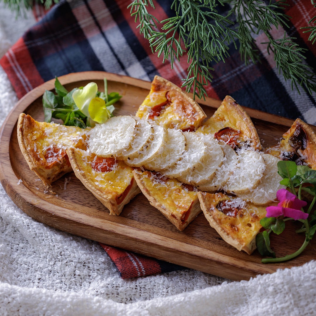 リンゴのキャラメリーゼ煮 ローズマリー 長いもとベーコンのキッシュ |
