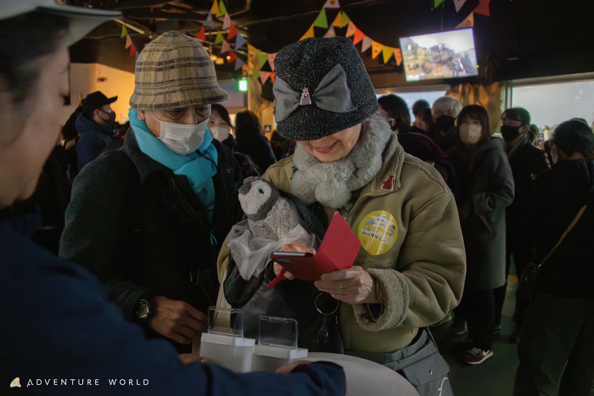 飼育スタッフによる、これまでの成長を振り返るトークイベントを実施しました。今朝のエンペラーペンギンの赤ちゃんの体重は14.8kg。誕生時の295.9gから約50倍の重さにまで成長しました。赤ちゃんの成長の喜びをゲストの皆様と分かち合いました。