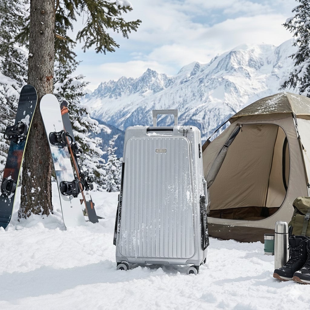 雪道対応のワイドキャスターと105Lの大容量を実現。空港預け入れも安心の高耐久設計で、ウィンタースポーツやキャンプなどのアウトドア移動の負担を軽減します。