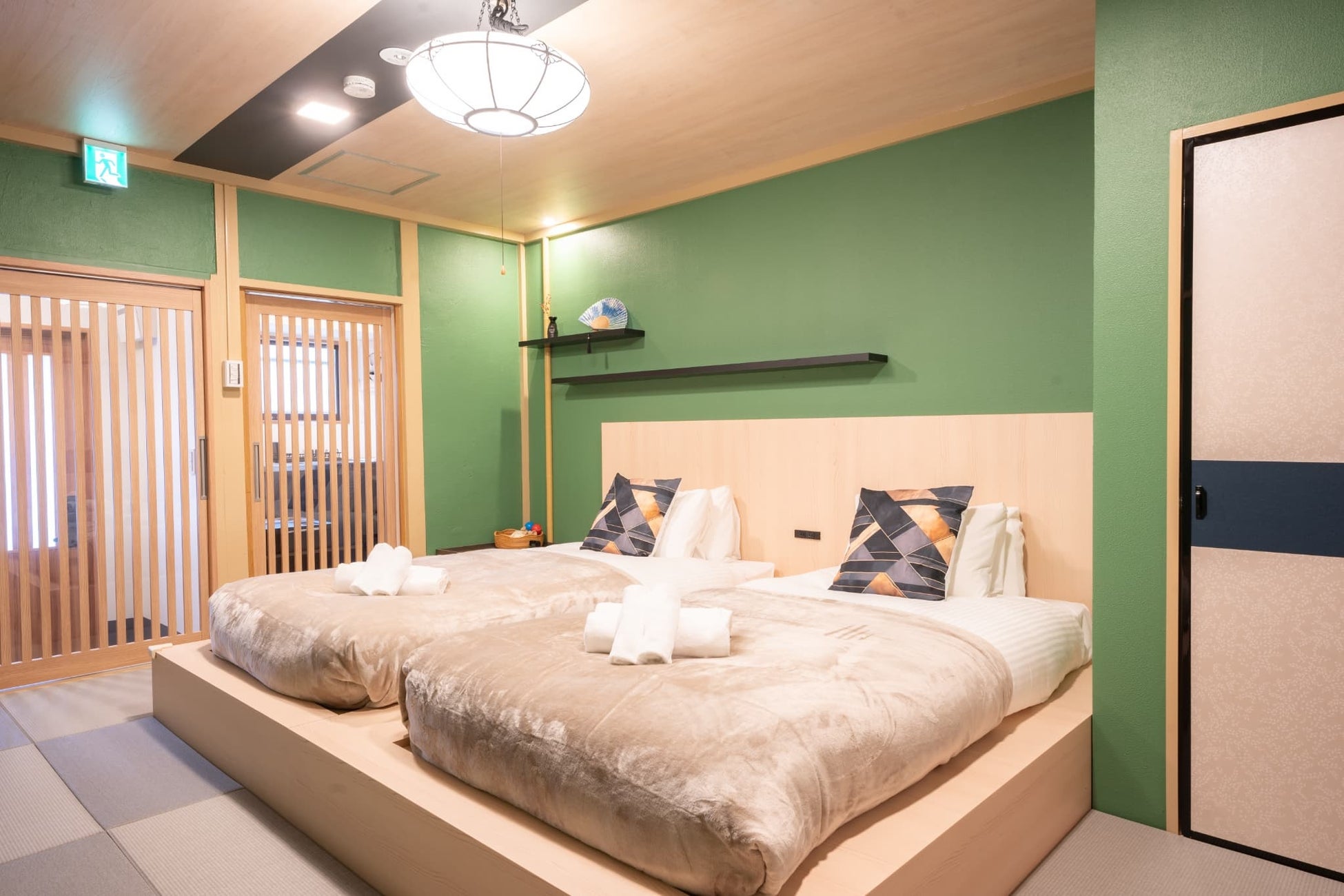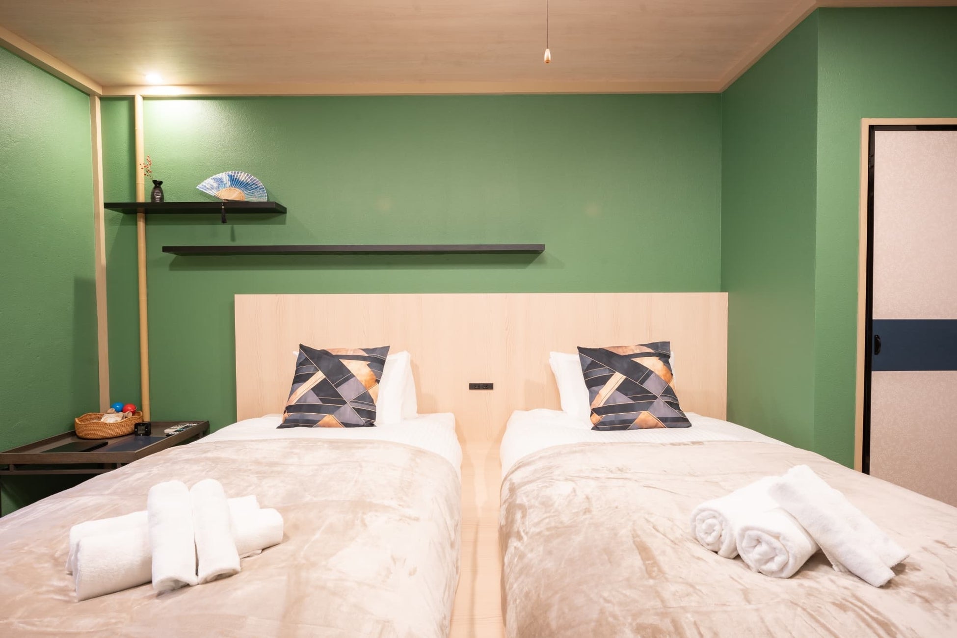 ・ベッド2台とお布団2セットを備え、最大4名様までゆったりとお過ごしいただけます。