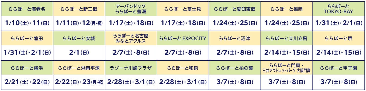 本イベントは、ららぽーと各施設にて全国順次開催を予定しています。