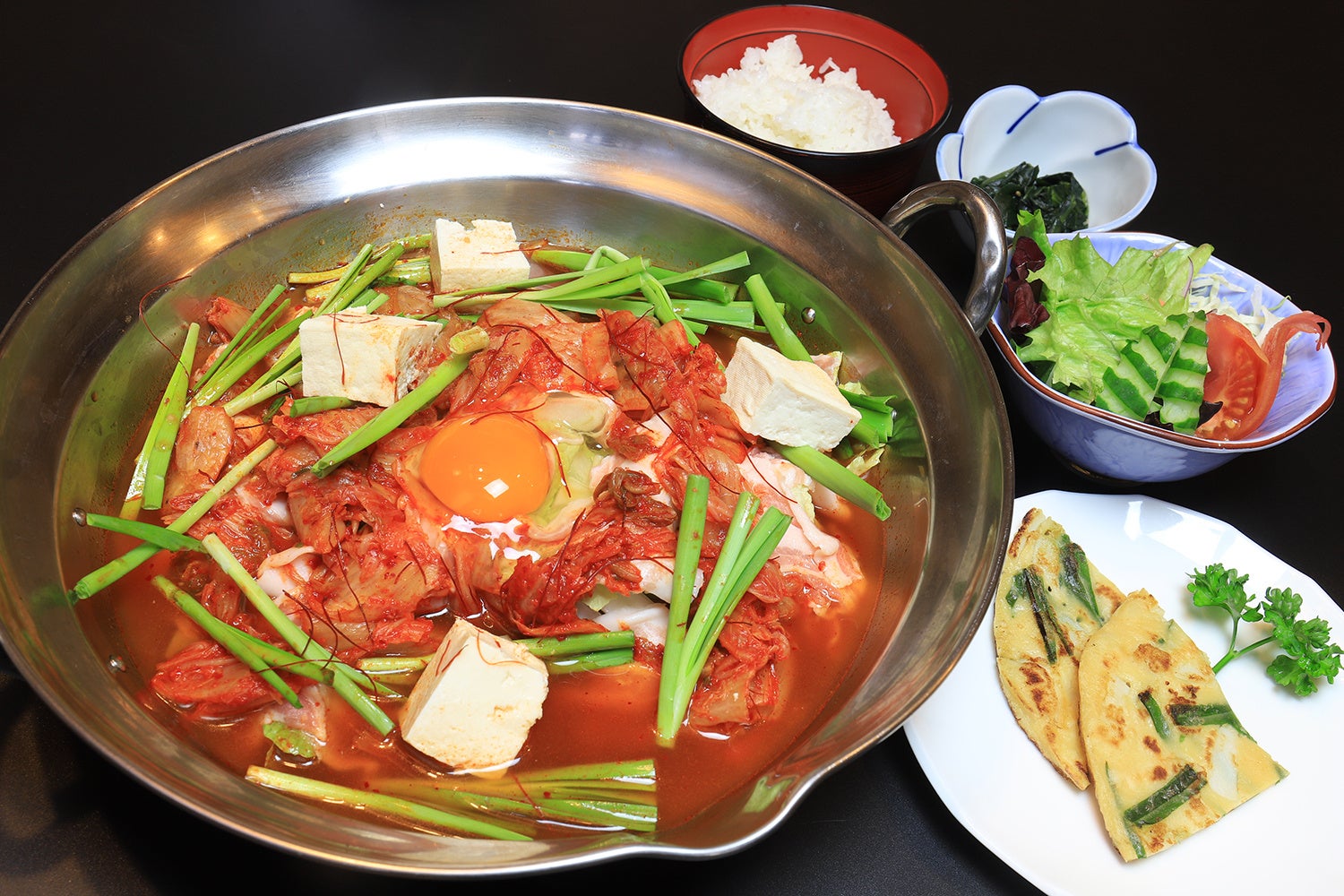 キムチ鍋/チヂミ/ミニサラダ/ごはん/小鉢
