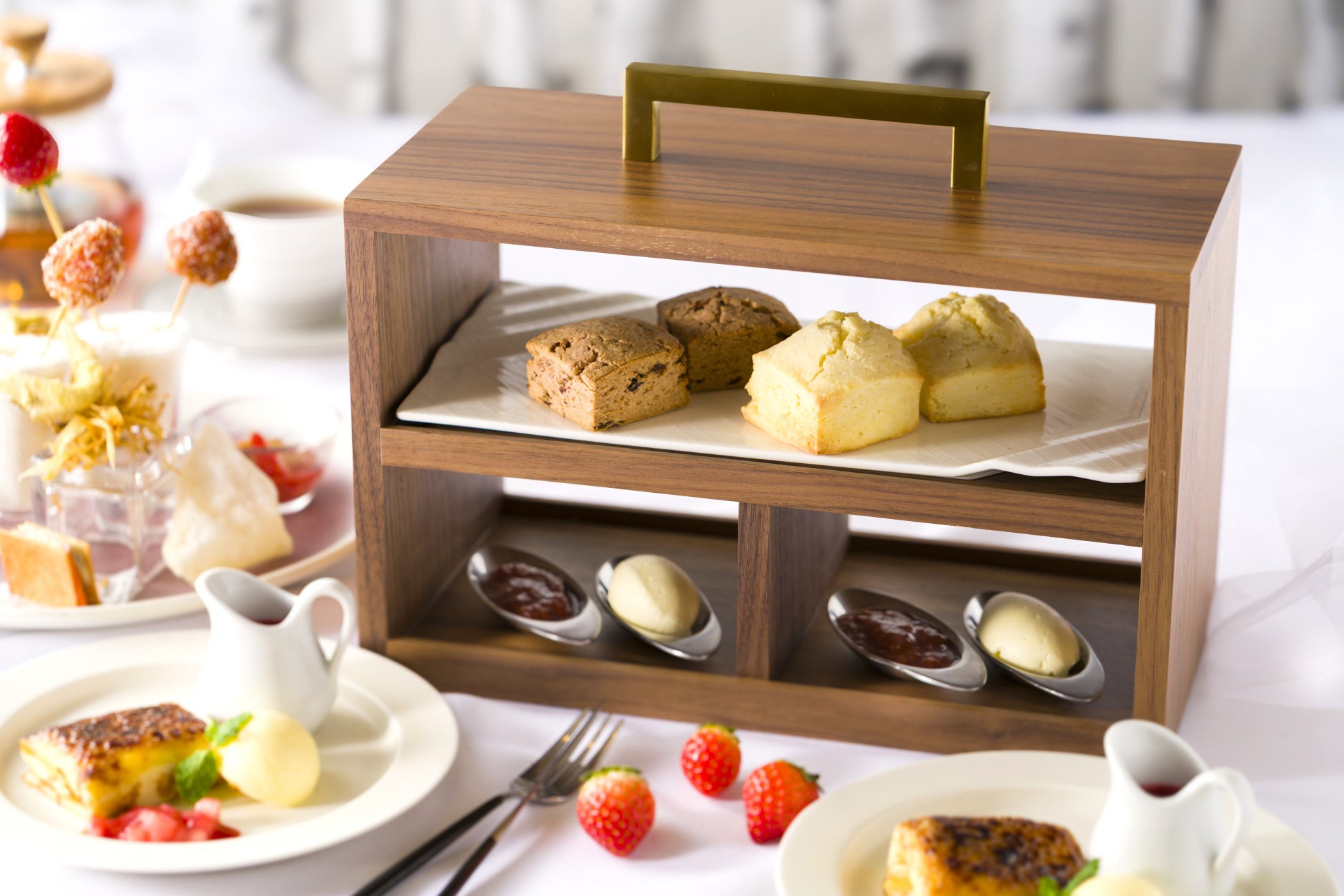 冬から春へと向かう北海道の季節を、甘酸っぱいいちごの醍醐味を一皿一皿に表現。スイーツだけでなく、北海道食材を活かした独創的なセイボリー、そして目の前で仕上げるライブデザートパフォーマンスまで、五感で楽しむアフタヌーンティーを提供します。