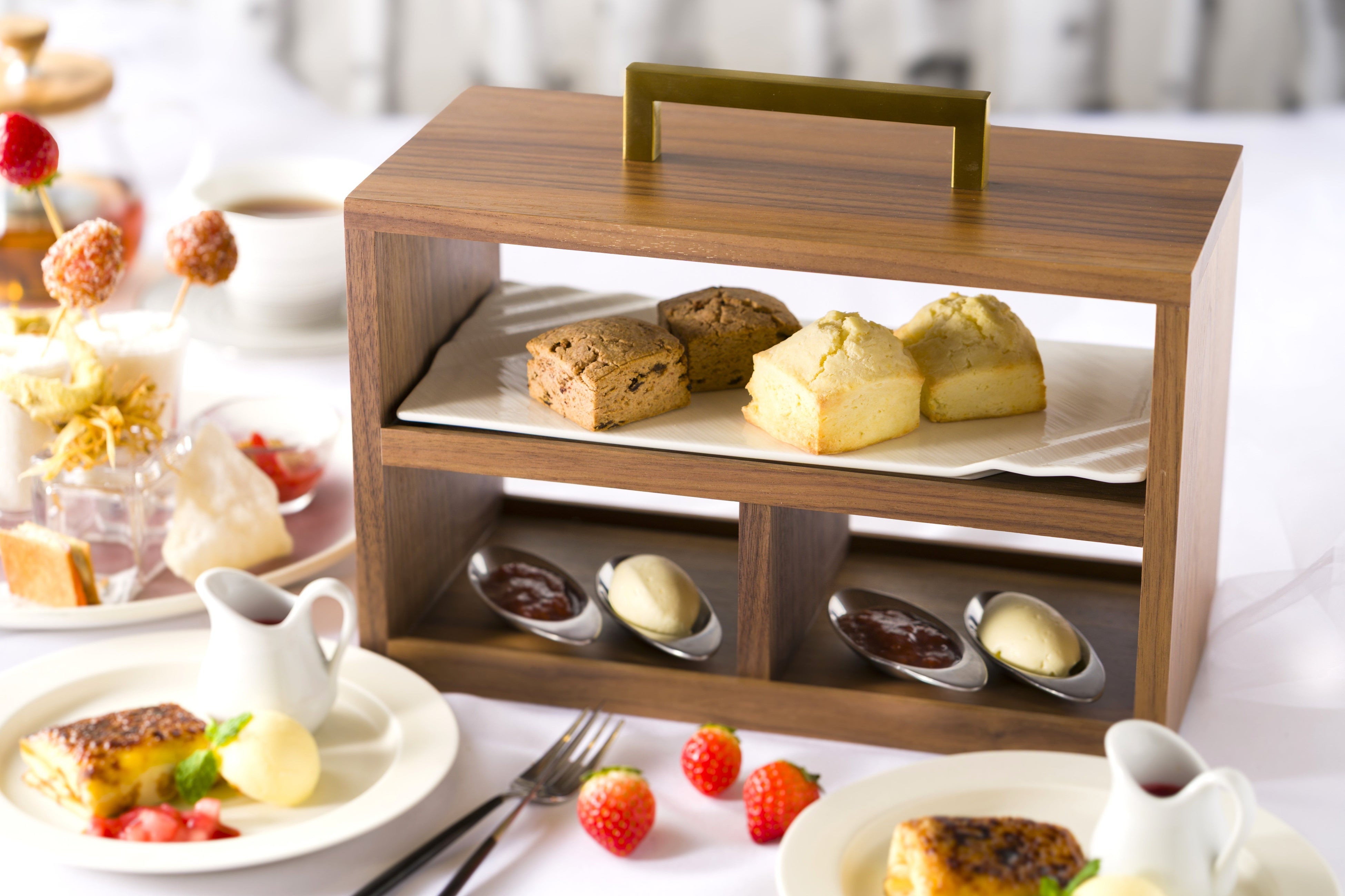 ひとつひとつパティシエが手作りしているスコーンは、テイクアウトもできる人気商品。今回は定番のプレーン、そして特別ないちごの2種を楽しめます。