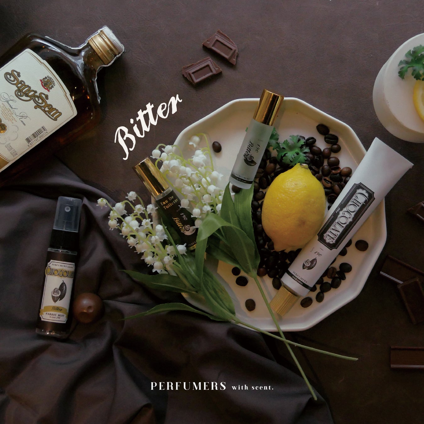 本企画で展開される香りは、日本の調香師が手掛ける香水ブランド「PERFUMERS」のチョコレートコレクションより、「ティーチョコレート」「オランジェット」「ビター」の3種類。