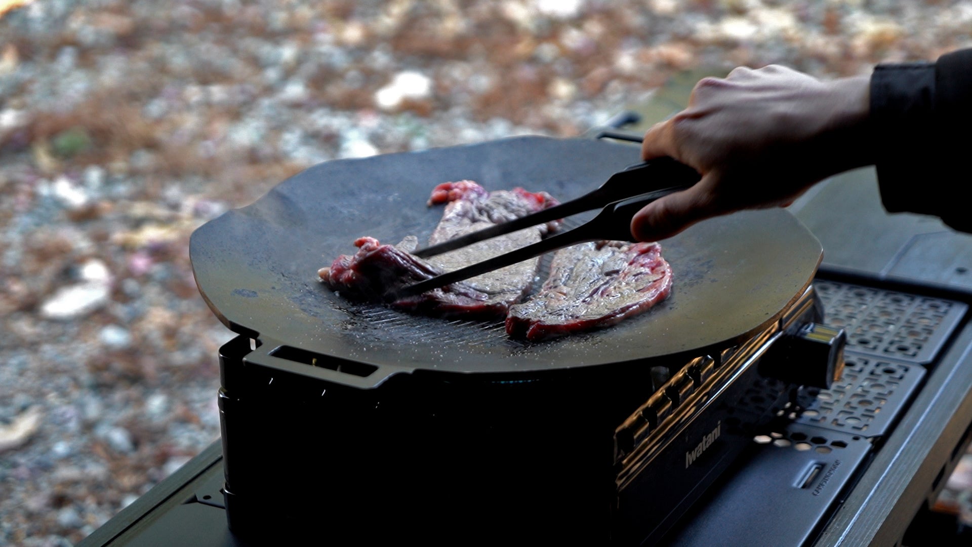 炎の前で、名栗の凹凸がてのひらに噛み合い、ブラックステンレスが光を映す。