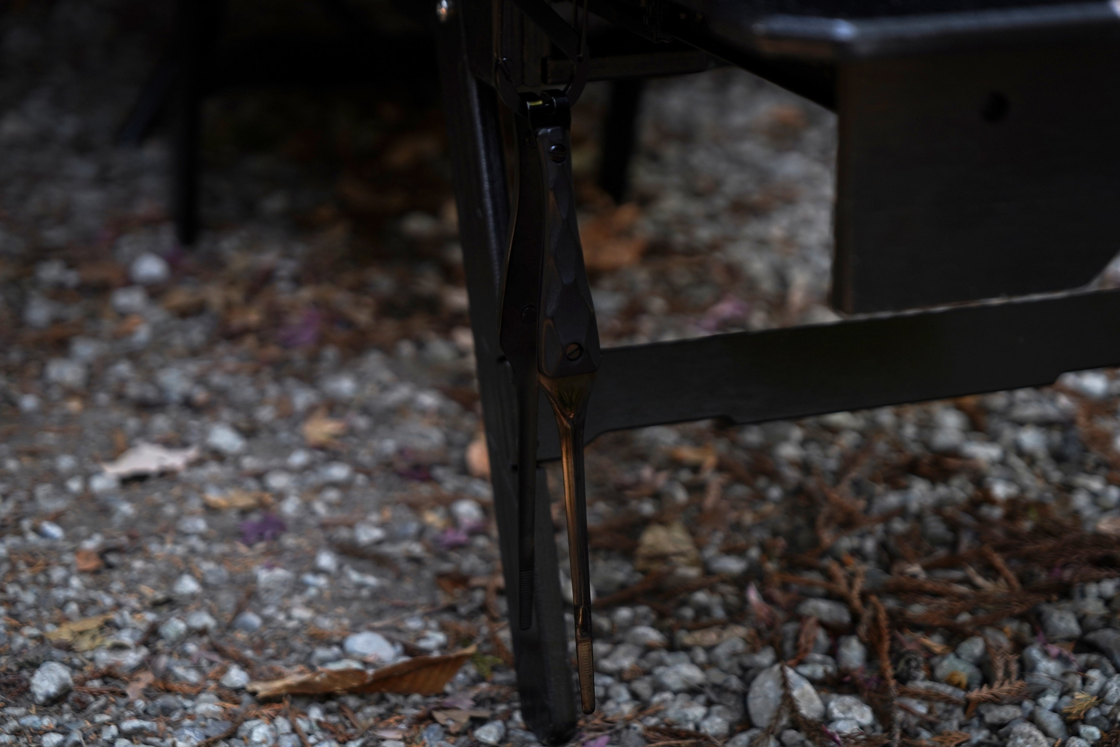 金属部まで黒で染め上げたステンレスボディは、焚き火やランタンの灯りを艶やかに反射。