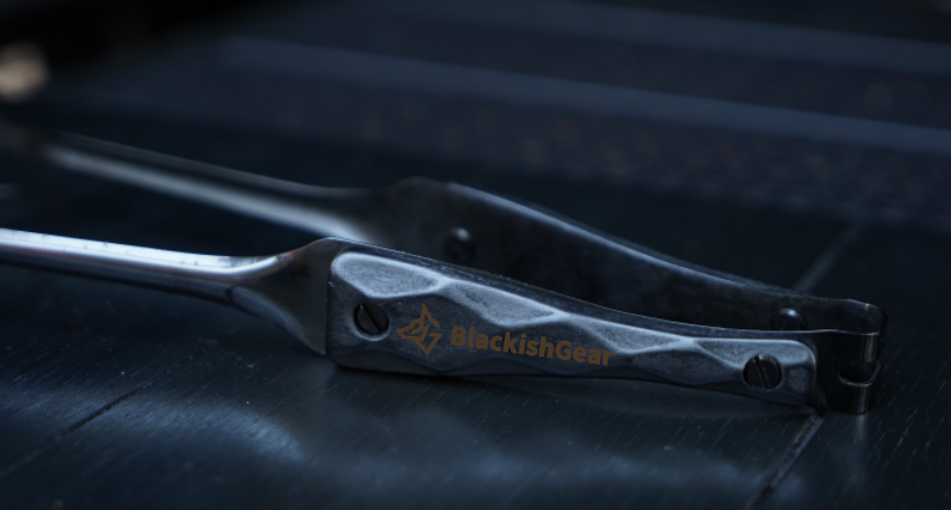 「FANG」は、BlackishGearの象徴である黒狼の牙、そしてこのトングの鋭いシルエットを重ねた名です。