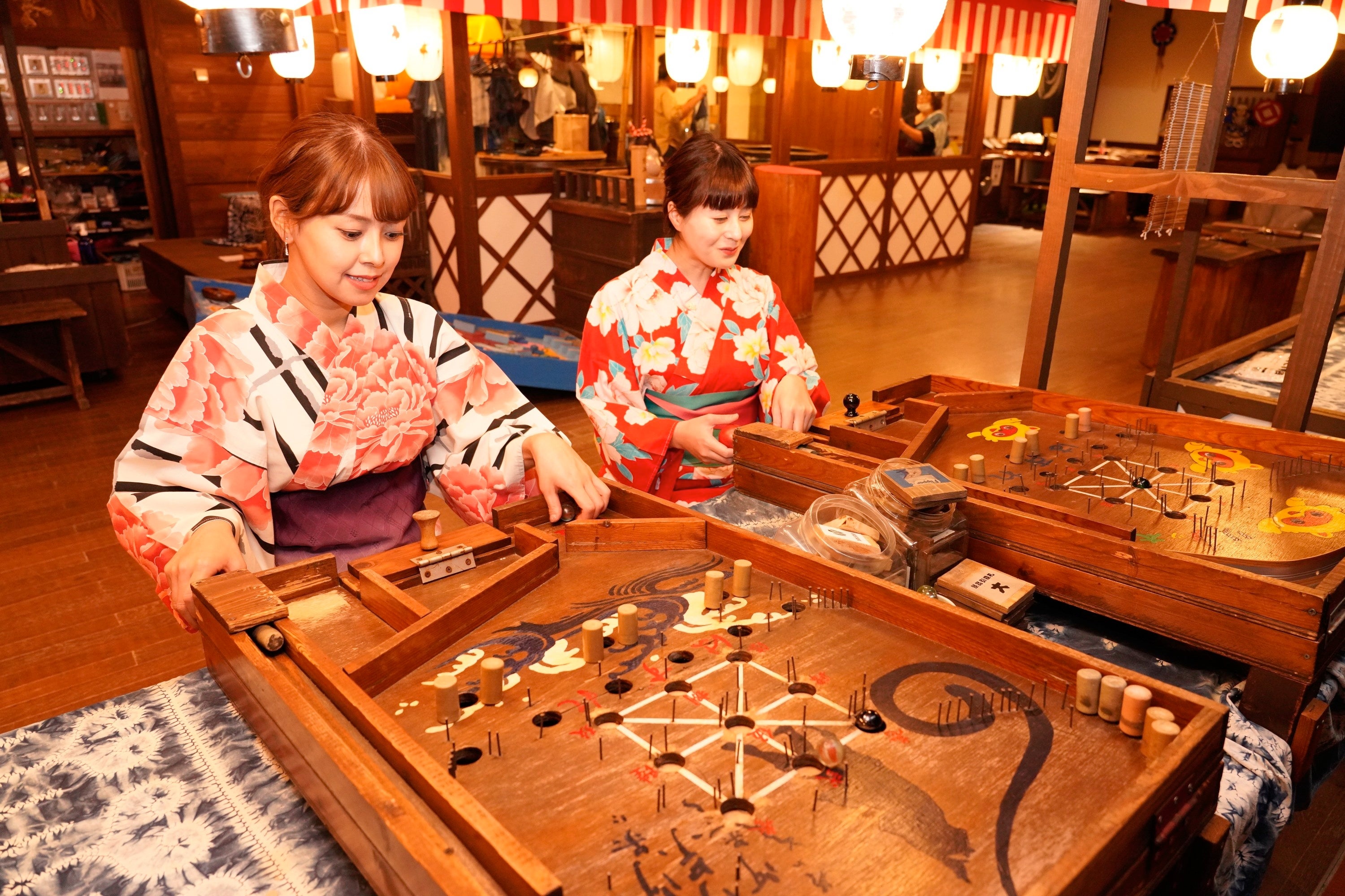 館内1階「阿波の國」では、縁日遊びや駄菓子屋さん狸堂、大谷焼の絵付け、江戸時代から伝わる“天然灰汁(あく)発酵建て” 阿波本藍染めなどのご当地プログラムが体験できます。