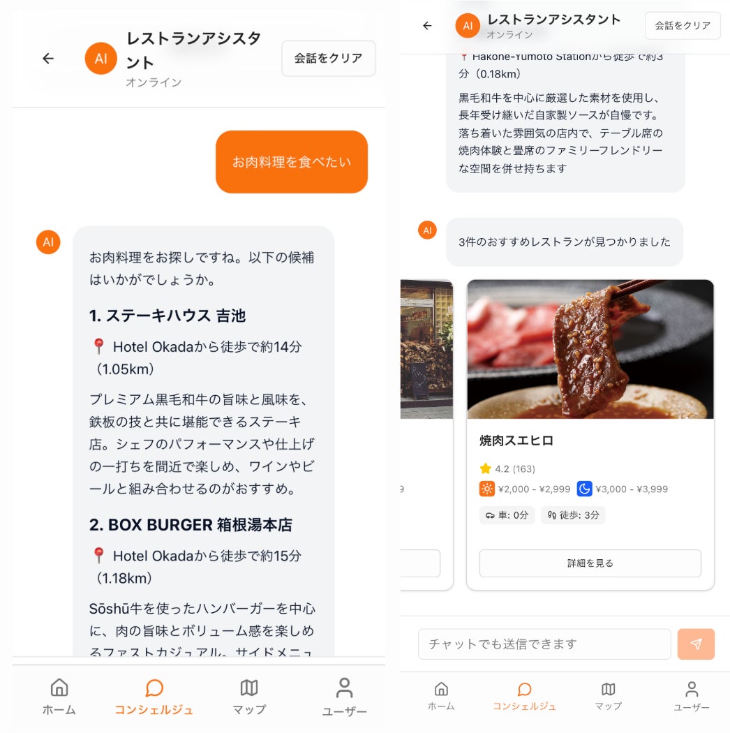 こうした背景を受け、TripXと箱根DMOは、飲食店の検索から比較、予約の手間を限りなくゼロにすることをコンセプトに、AIによる代理予約・レコメンド機能を備えた本サービスの開発・実証を進めてきました。