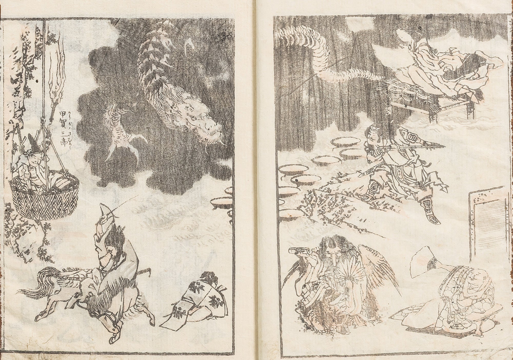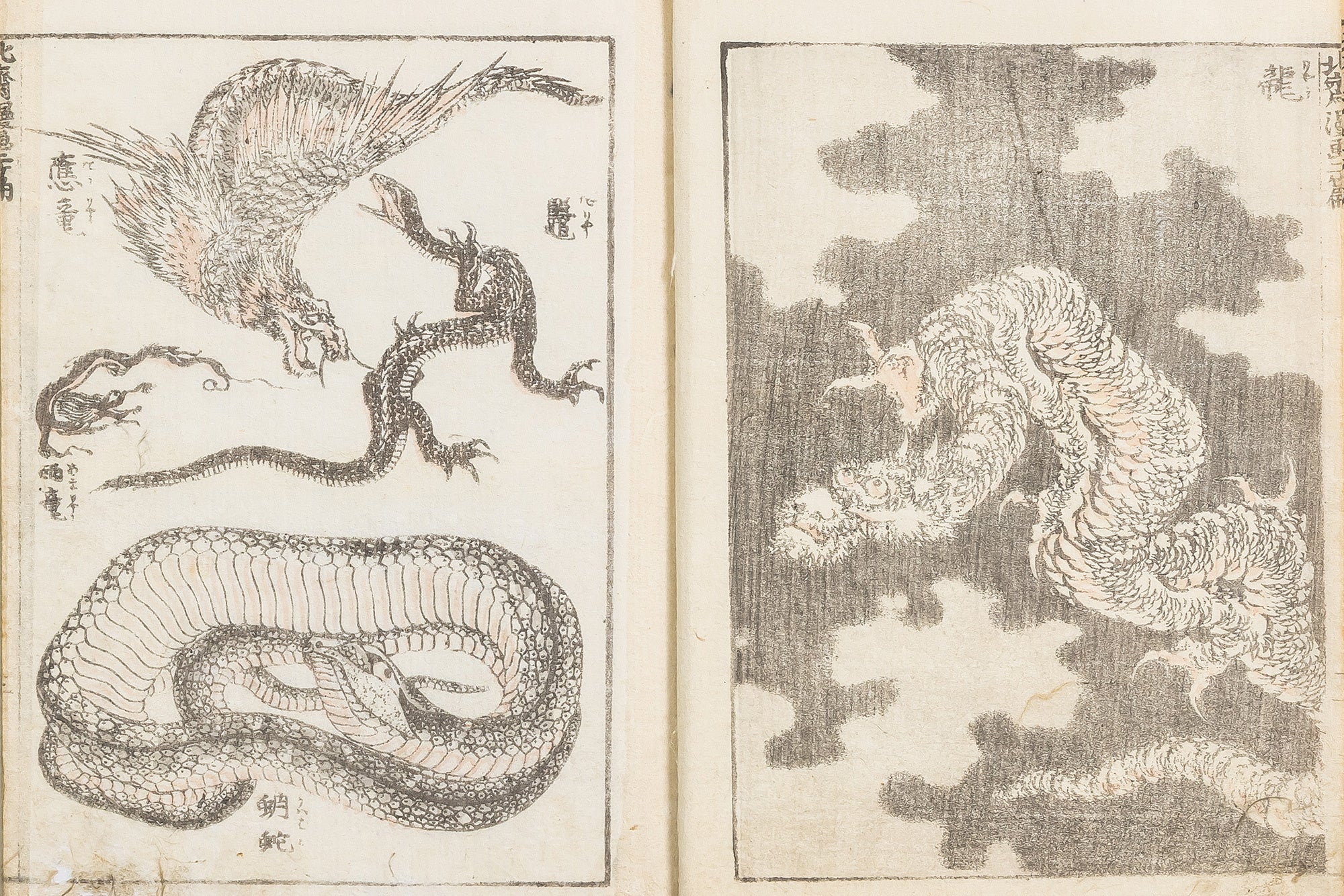 「龍」といってもその種類や姿は様々です。北斎は、代表作である『北斎漫画』や『冨嶽百景』の中に、「応龍」や「雨龍」など小さなものから大きなものまでさまざまの龍を描いています。北斎の知識と想像力もうかがうことができる作品の数々をご覧いただけます。