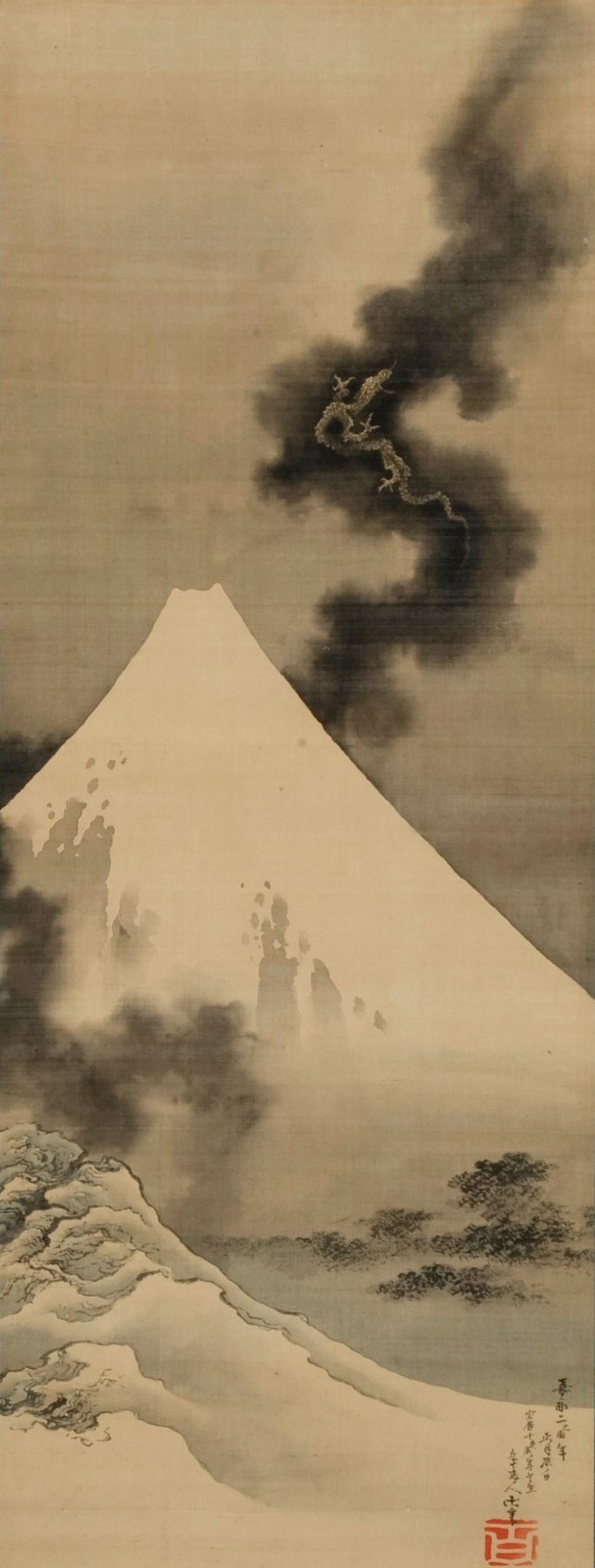 肉筆掛軸「富士越龍」