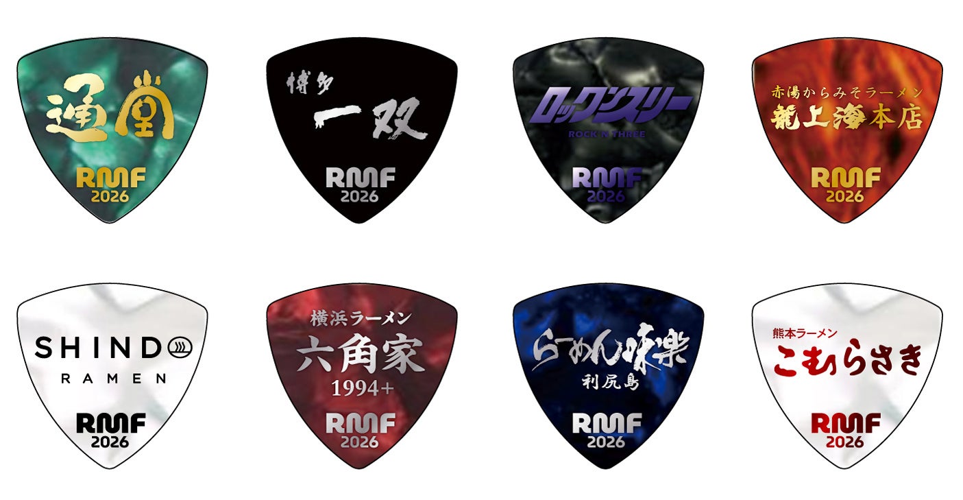 8店舗すべての交換券を集め、参加用紙に貼付のうえイベントカウンターへお持ちいただいた方には、「RAMEN MUSIC FEST オリジナルギターピックセット」 をプレゼント。
