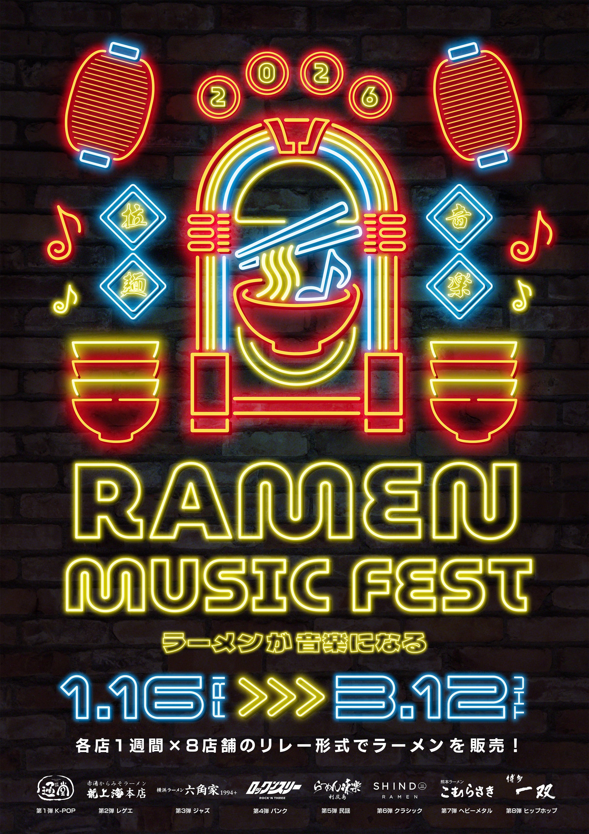 新横浜ラーメン博物館(横浜市港北区、代表取締役:岩岡洋志)では、ラーメンと音楽の融合をテーマにした新企画 「RAMEN MUSIC FEST」 を、2026年1月16日(金)より開催いたします。