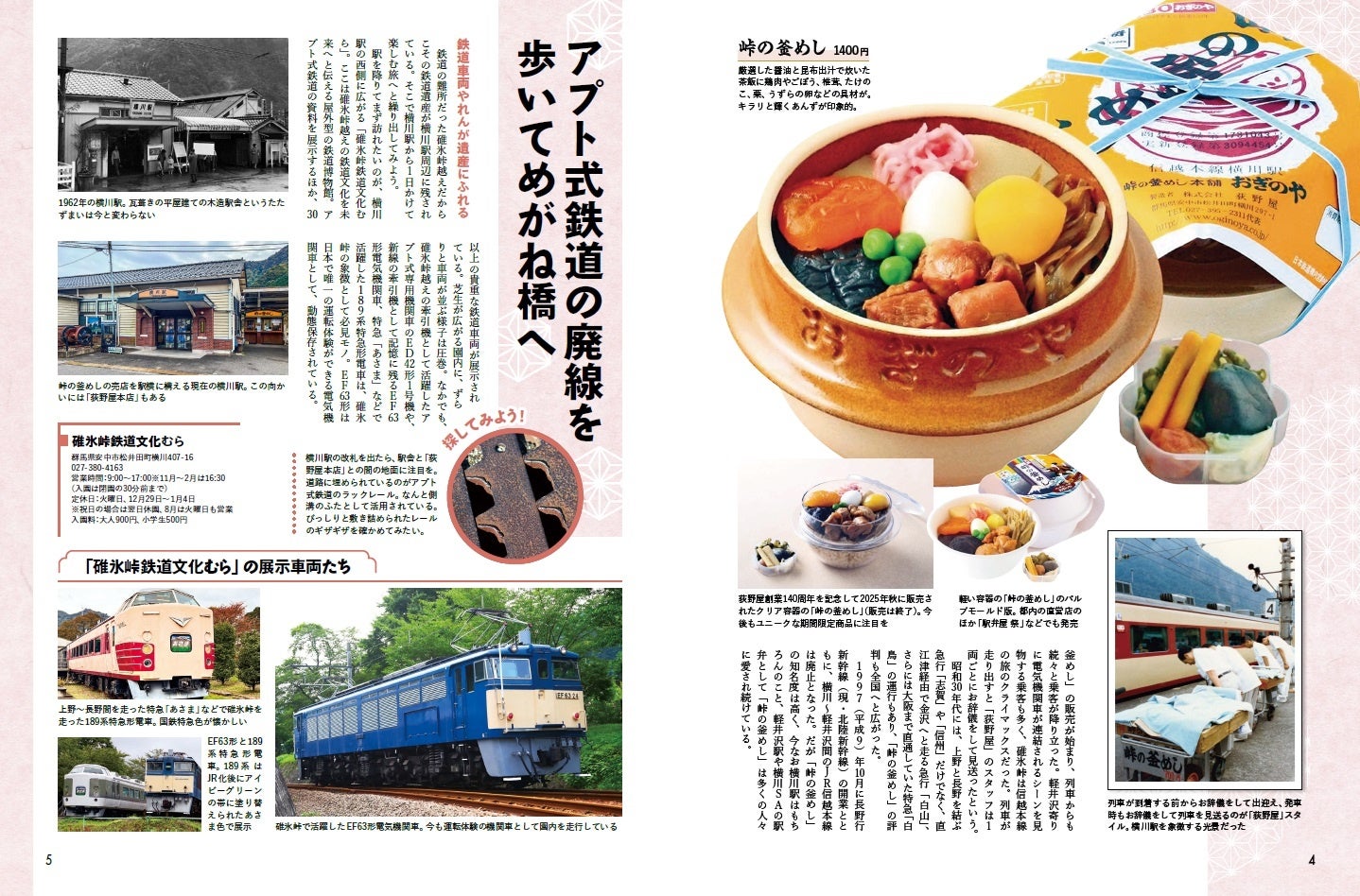 巻頭企画では、信越本線・横川駅の人気駅弁「峠の釜めし」の歴史と、販売駅である横川駅から始まる小さな廃線旅をご案内。