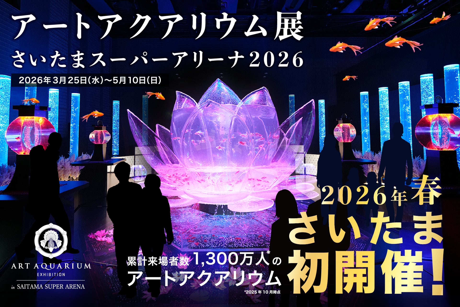 ART AQUARIUM組合(業務執行組合員 株式会社Amuseum Parks 代表取締役 亀井孝明・馬渕明広)は、埼玉県さいたま市中央区にある“さいたまスーパーアリーナ”において、「アートアクアリウム展 さいたまスーパーアリーナ2026」を 2026 年3月25日(水)~5月10日(日)の期間限定で開催します。埼玉県では、初開催となります。