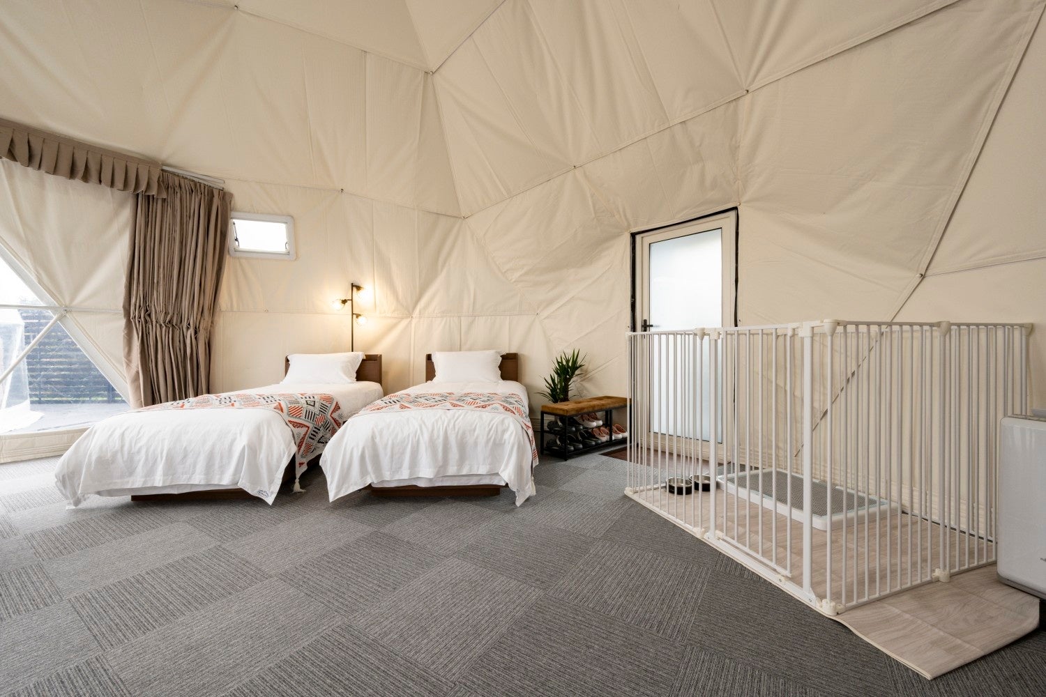 滋賀県を代表する人気グランピング施設「グランドーム滋賀高島」がプロデュースし、わんちゃんとの滞在に必要な快適さと安心を細部まで追求しました。
