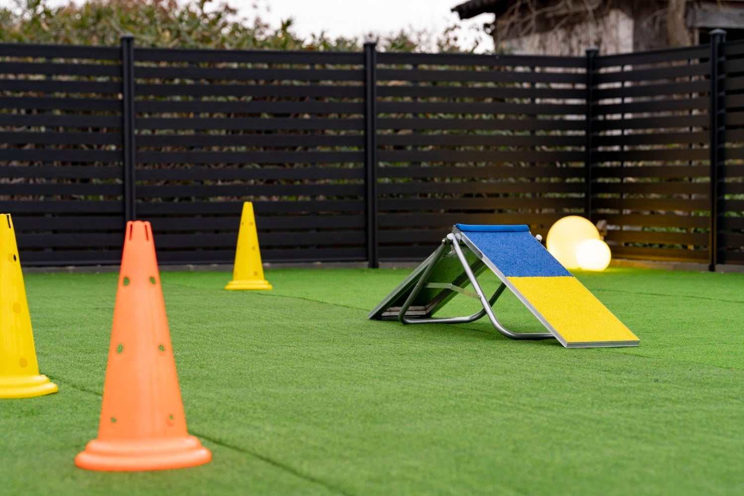 周囲を気にせず遊べる広々空間は、安心・安全に配慮された設計で、リードなしでものびのび過ごせます。