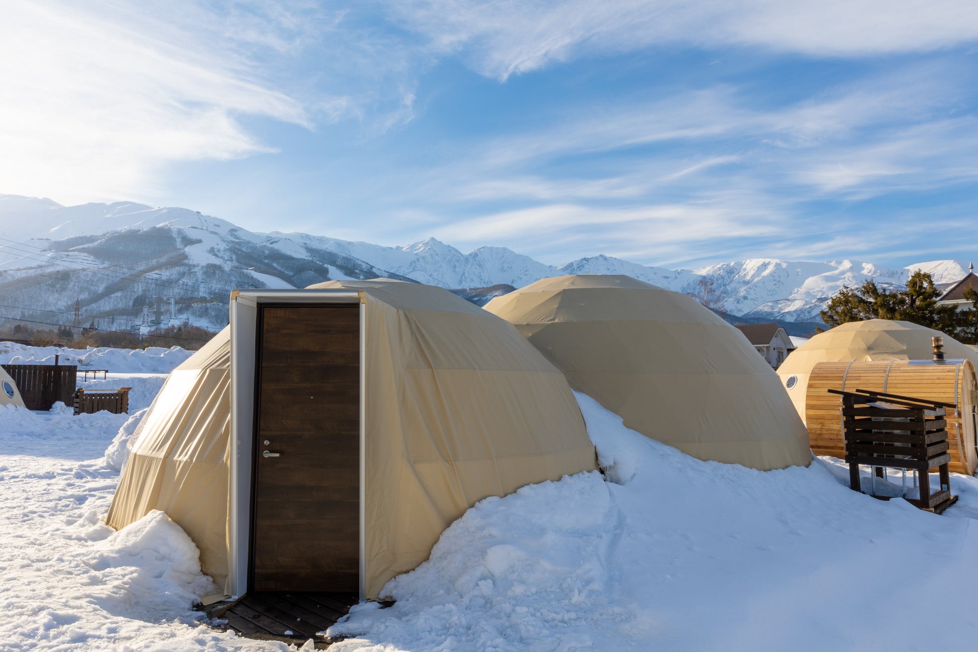 特徴: 白馬村初のプライベートサウナ付きドーム型グランピング施設。本格的なフィンランド式サウナと、雪解け水を使用した水風呂が楽しめ、季節を問わず多くのサウナ愛好家に利用されています。