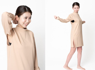 独自の脇穴スリットにより、着たままタオルで全身を洗うことが可能。「肌を隠す安心感」と「洗える清潔感」を両立しました。伸縮素材とサイドスリットで、動きやすさも確保しています。