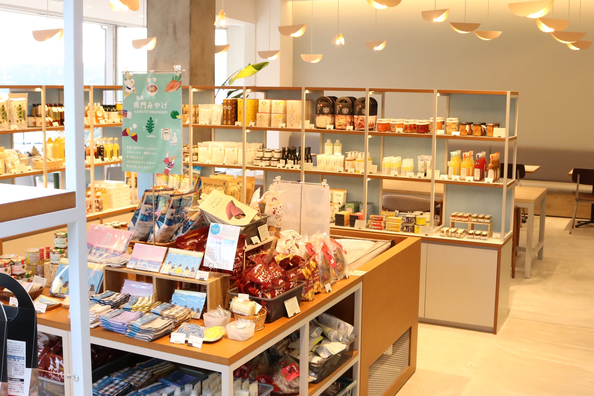 「UZUrhythm(ウズリズム)」は、瀬戸内海国立公園の千畳敷展望台前にあるカフェレストラン&スーベニアショップです。カフェでは、徳島県産の食材を使ったドリンクや軽食を提供し、大鳴門橋やうずしおといった絶景を眺めながら食事が楽しめます。