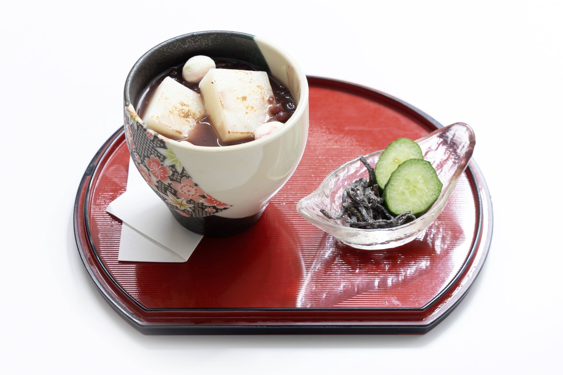 ふっくらとした小豆の旨みが口いっぱいに広がり、心も体も温まる一杯です。寒い季節に、ほっと一息つける和の甘味としてお楽しみいただけます。