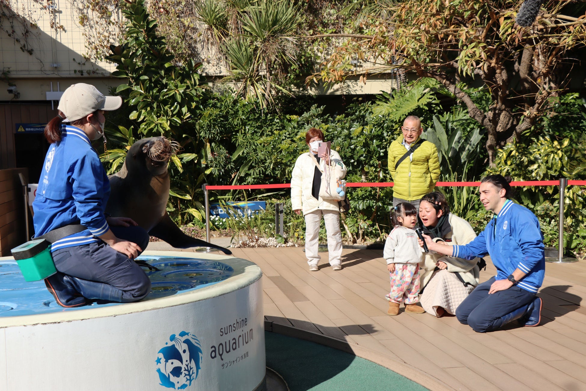 記念すべき2,000万人目の入場者となった、北海道からお越しの山上さんご家族には、サンシャイン水族館館長より記念品としてファンクラブ会員制度「アクアリウムクラブ」のプレミアムプラン会員証4名分などが贈呈されました。また、達成を記念して「アシカトレーナー」体験に挑戦していただきました。山上さんは2,000万人目となったことについて「突然だったのでびっくりしたが、とても嬉しかった」とコメントしました。