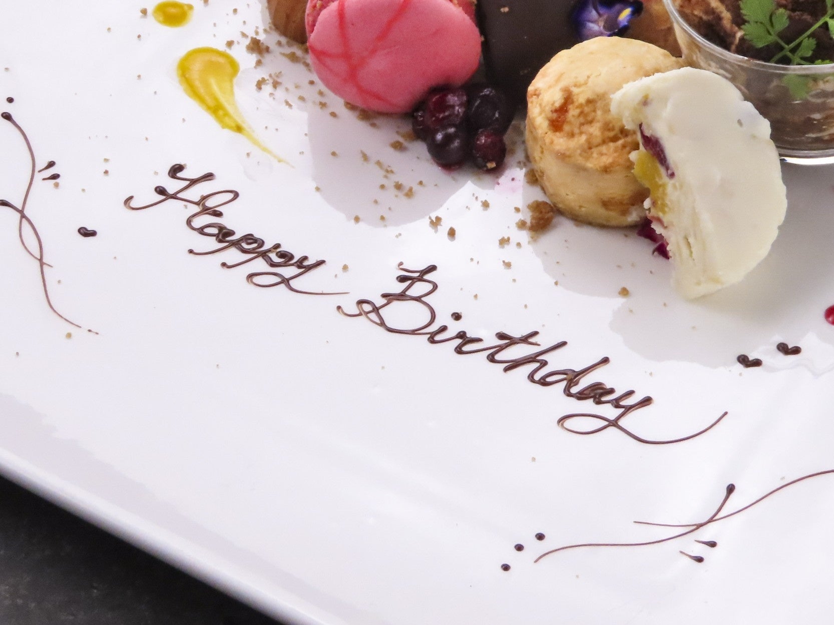 コースのデザートには、オリジナルのメッセージを添えることも可能。お誕生日や記念日のお祝いはもちろん、日頃の感謝を伝える一言を添えて、大切な方と過ごす特別なひとときをより印象深いものに演出します。