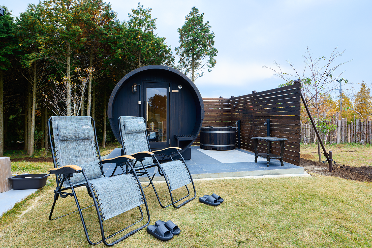 完全プライベートな空間のため、周囲を気にすることなく、セルフロウリュや高原の澄んだ空気に身を委ねる外気浴をお楽しみいただけます。