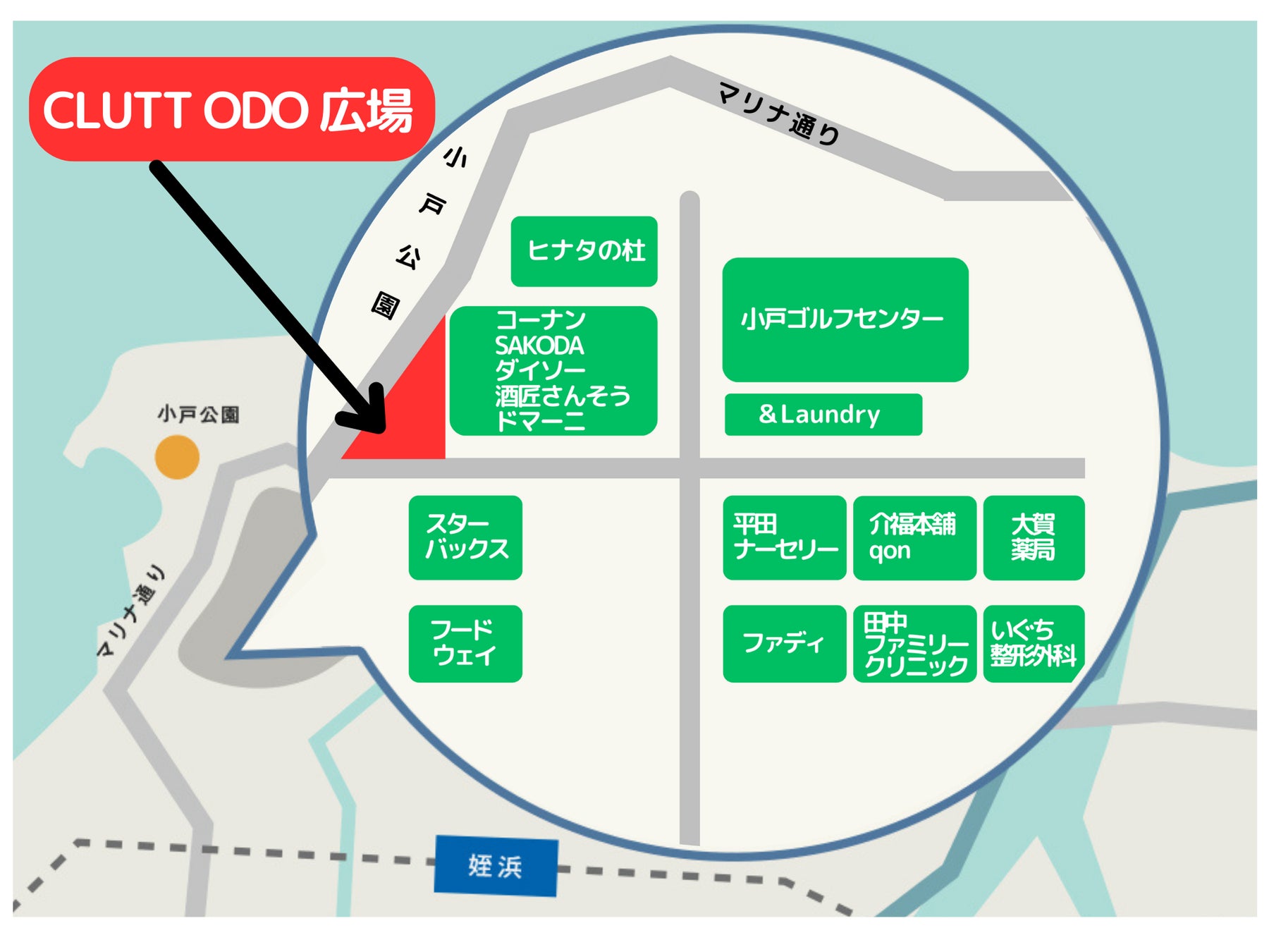 CLUTT ODO広場 所在地:福岡市西区小戸2丁目6(コーナンめいのはま店横)